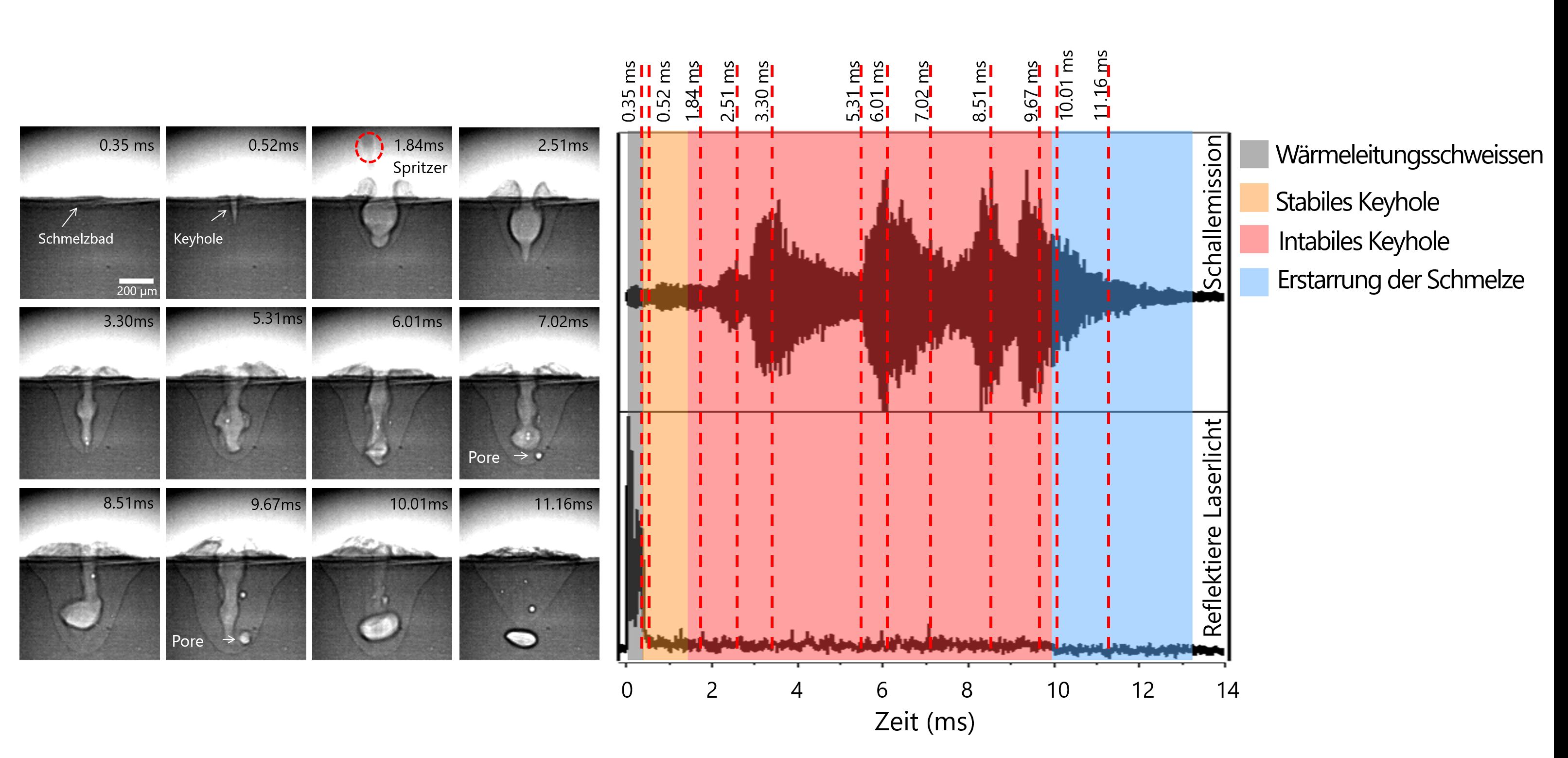 Einem Team von Empa-Forschern um Kilian Wasmer ist es nun gelungen, den Moment der Instabilität beim Laser-Tiefschweissen exakt zu erkennen. Sie verwenden dazu einerseits einen günstigen akustischen Sensor und messen andererseits die Reflexion des Laserstrahls auf der Metalloberfläche. Die kombinierten Daten werden mit Hilfe künstlicher Intelligenz (KI) innerhalb von 70 Millisekunden analysiert. So lässt sich die Qualität des Laserschweissprozesses in Echtzeit überwachen.