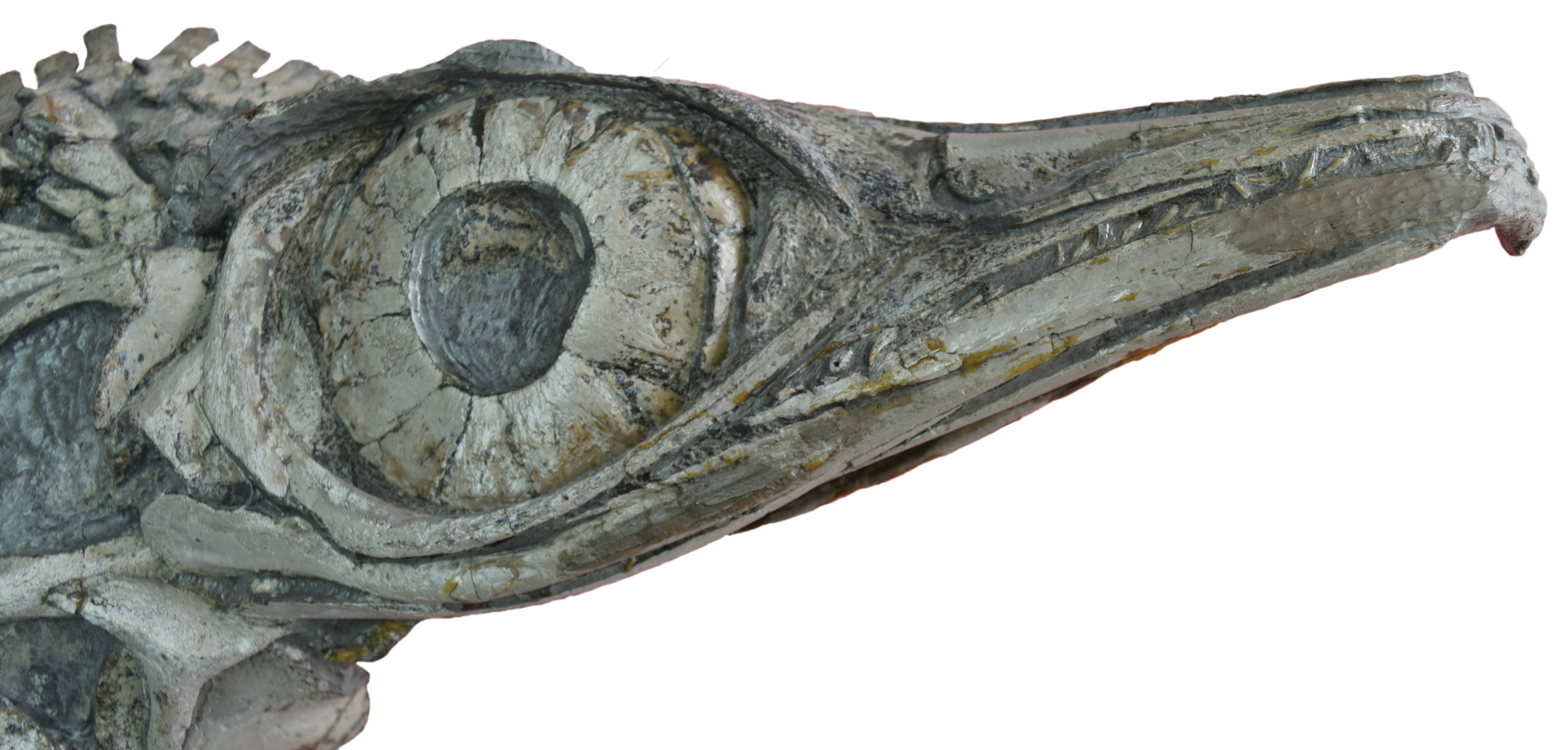 The three-dimensional skull was examined first, because it was most similar in its type of preservation to the English Hauffiopteryx fossils. The palaeontologists quickly discovered that the arrangement of the bones in this skull was very different from the English Hauffiopteryx fossils, but also differed from the remaining nine German specimens. However, the latter showed no significant differences from the British material. The researchers' initial observations were supported by more detailed quantitative analyses: The differences in the three-dimensional skull of the ichthyosaur from southwestern Germany showed that it was a new species, distinct from all other specimens.