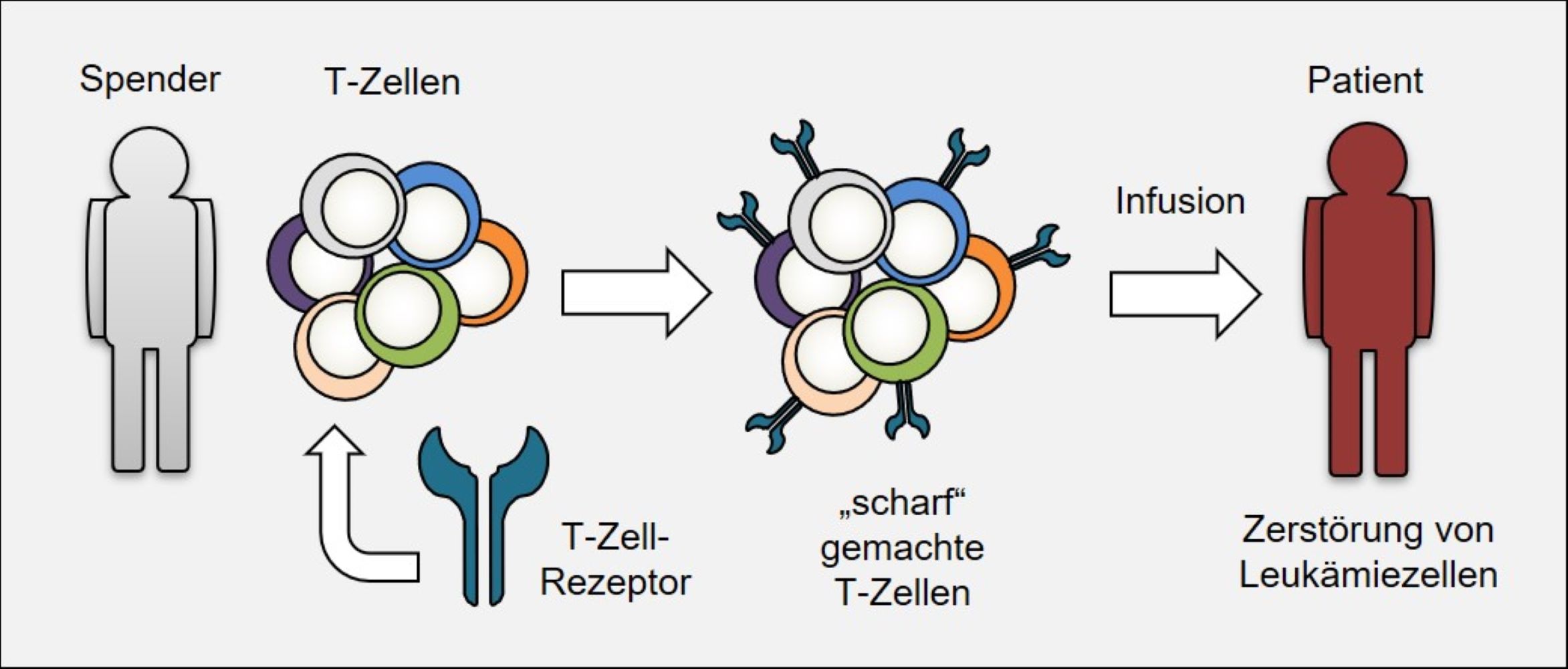 T-Zellen des Stammzellspenders können mit Hilfe eines T-Zell-Rezeptors in ihrer Erkennung von Leukämiezellen gestärkt werden. Diese T-Zellen können dann nach Infusion in den Patienten Leukämiezellen gezielt erkennen und zerstören.