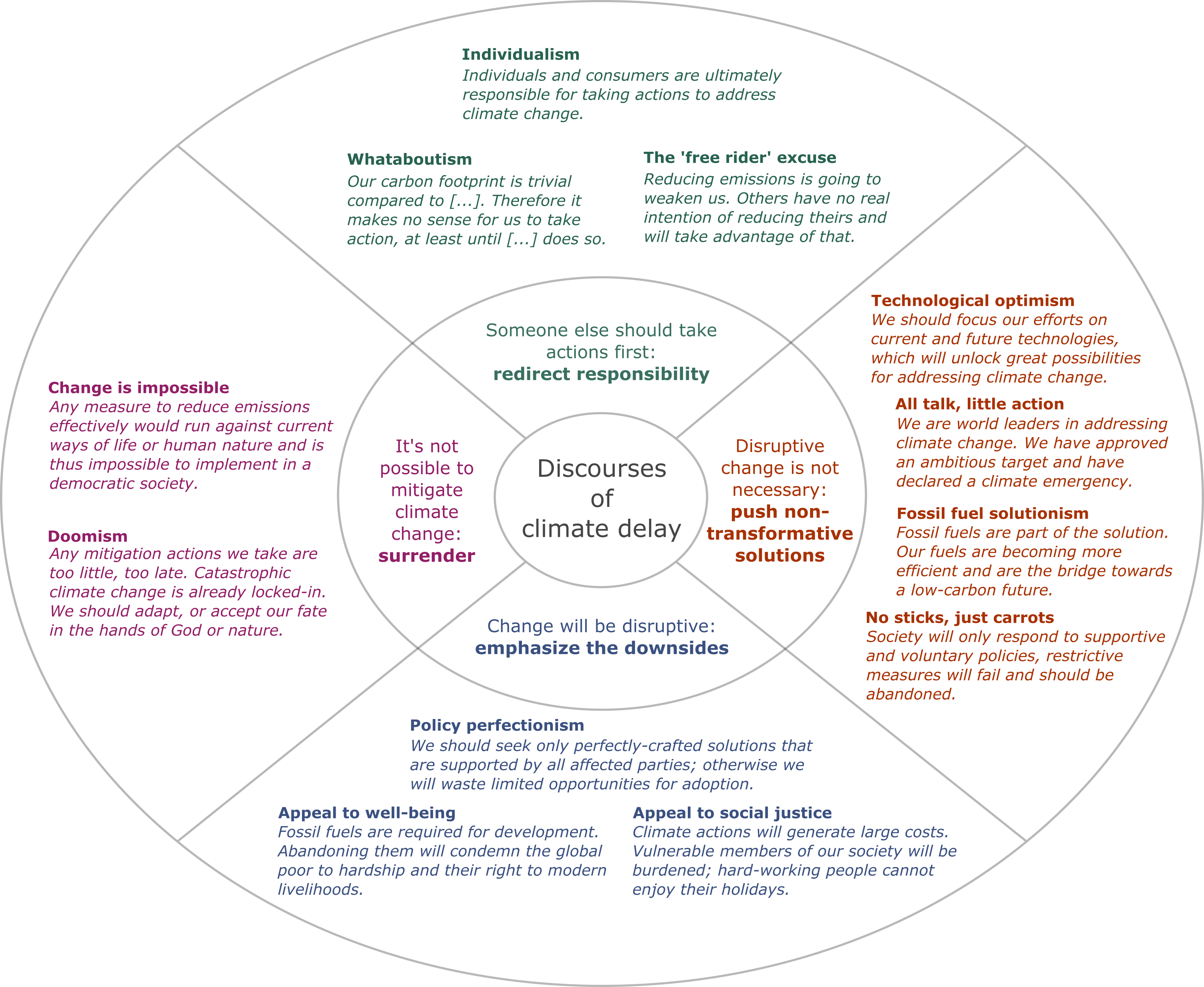 Lamb, W., Mattioli, G., Levi, S., Roberts, J., Capstick, S., Creutzig, F., Minx, J., Müller-Hansen, F., Culhane, T., Steinberger, J., 2020, Discourses of climate delay, Global Sustainability
