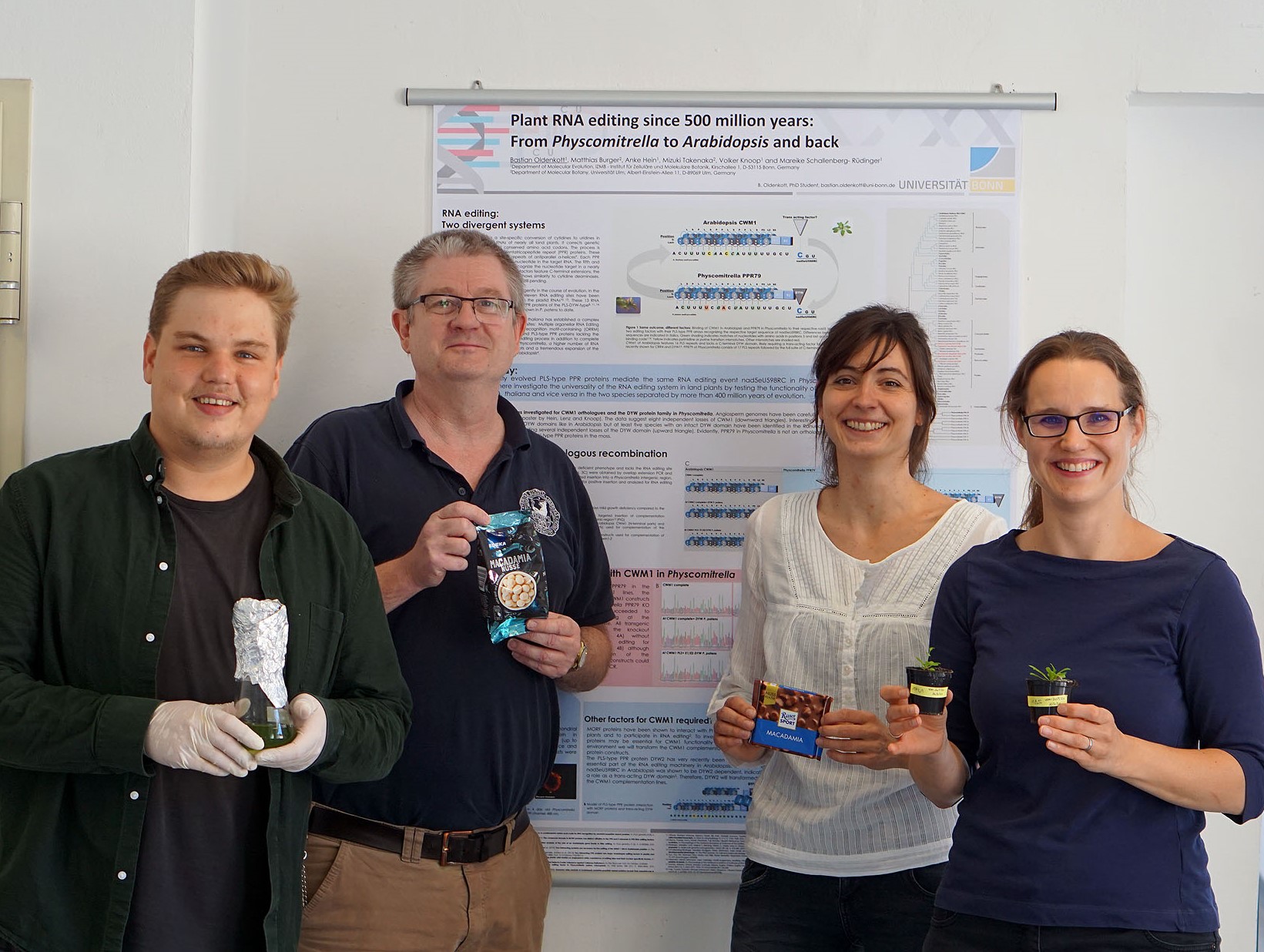 Bastian Oldenkott, Matthias Burger, Anke-Christiane Hein, Anja Jörg, Jennifer Senkler, Hans-Peter Braun, Volker Knoop, Mizuki Takenaka and Mareike Schallenberg-Rüdinger: One C-to-U RNA editing site and two independently evolved editing factors: testing reciprocal complementation with DYW-type PPR proteins from the moss Physcomitrium (Physcomitrella) patens and the flowering plants Macadamia integrifolia and Arabidopsis thaliana; The Plant Cell; DOI: https://doi.org/10.1105/tpc.20.00311