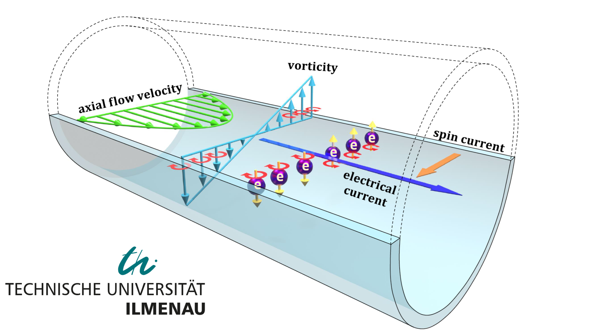 Laptop- und Handyspeicher der neuesten Generation nutzen Erkenntnisse eines der jüngsten Forschungsgebiete der Nanoelektronik: der Spintronik. Die heutige Datendichte moderner Endgeräte wäre unmöglich ohne den von Peter Grünberg entdeckten und 2007 mit dem Physik-Nobelpreis gewürdigten Riesenmagnetowiderstand, einem Phänomen, das auf einer kollektiven Dynamik des Spins, des Eigendrehimpulses der Elektronen, beruht. In der Arbeit, die nun von Physical Review Applied zur Publikation angenommenen wurde, untersuchten Forscher um Prof. Christian Cierpka und Prof. Jörg Schumacher von der TU Ilmenau einen anderen spintronischen Effekt. In einer Serie von Experimenten verifizierten und erweiterten sie erstmals frühere Untersuchungen einer japanischen Forschergruppe aus Sendai: Mithilfe der kollektiven Kopplung der Spins an Strömungswirbel wurde eine elektrische Spannung erzeugt.