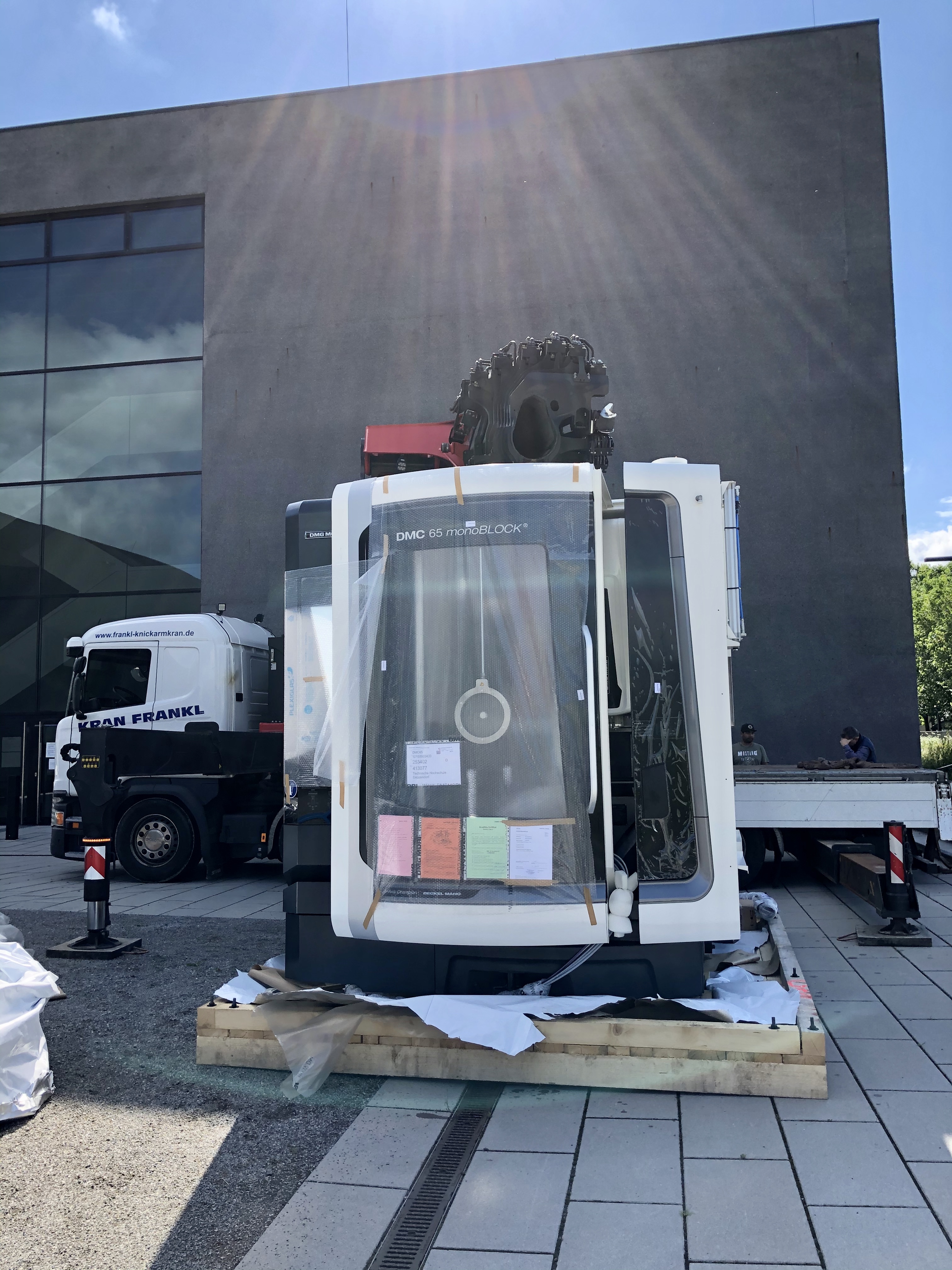 Nachwuchs für das Anwendungslabor Industrie 4.0 der Fakultät Naturwissenschaften und Wirtschaftsingenieurwesen an der Technischen Hochschule Deggendorf (THD). Für die Forschungsarbeiten des Teams um Prof. Dr.-Ing. Ludwig Gansauge wurde am 3. Juli eine 5-Achs-Simultanfräsmaschine mit umfangreichen Automationslösungen angliefert. Diese Maschine eröffnet dem Labor nun auch Forschungsmöglichkeiten im Bereich Künstlicher Intelligenz für den Werkzeug- und Formenbau.