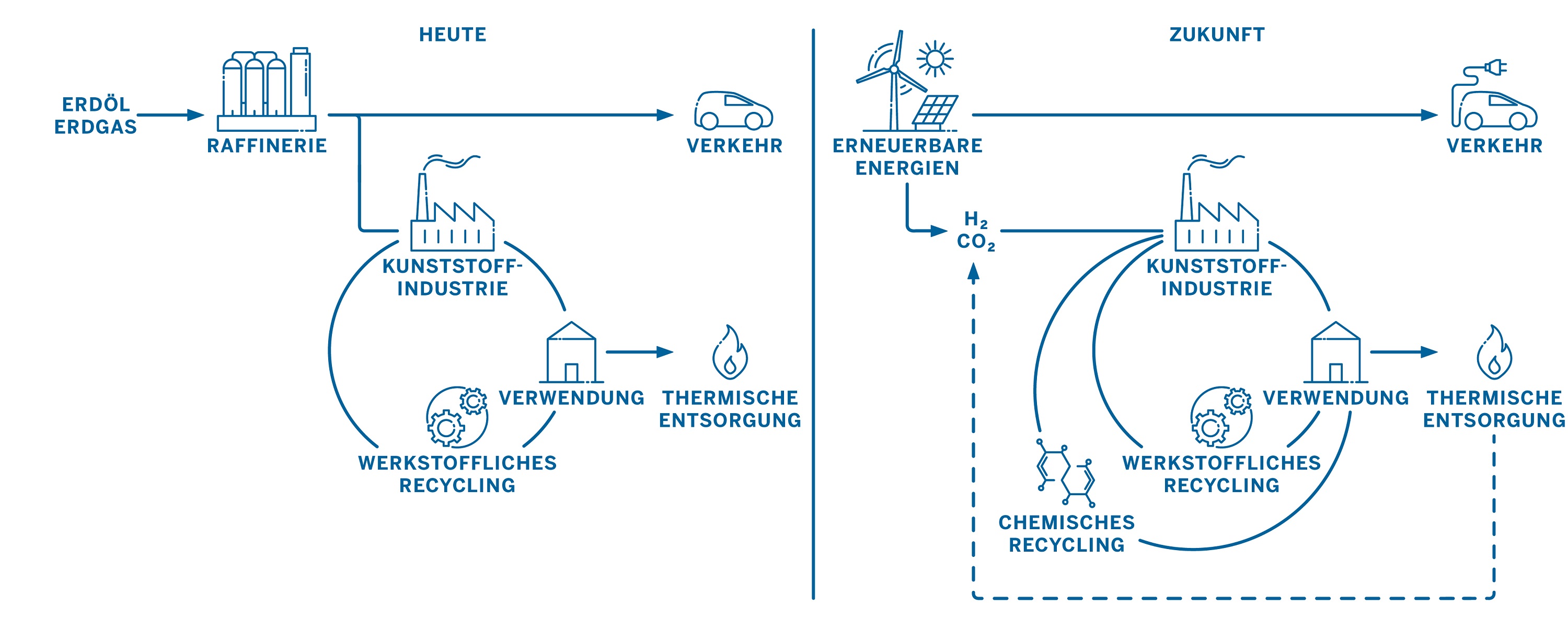 Mehr als sechs Millionen Tonnen Kunststoffabfälle fallen in Deutschland jährlich an, nur etwas weniger als die Hälfte kann werk- und rohstofflich genutzt werden, der Rest wird thermisch verwertet, also verbrannt. Gerade gemischte Kunststoffarten erschweren das Recycling. Hier setzt das chemische Recycling an. Bei diesem Verfahren werden die Stoffe durch hohe Temperaturen zersetzt und in kleinere Moleküle aufgespalten. Diese lassen sich im Sinne der Kreislaufwirtschaft in neue Kunststoffe oder chemische Grundstoffe überführen. Die Schätzungen gehen von bis zu zwei Millionen Tonnen Kunststoffabfall jährlich aus, der auf diese Weise wiederverwendet werden könnte.