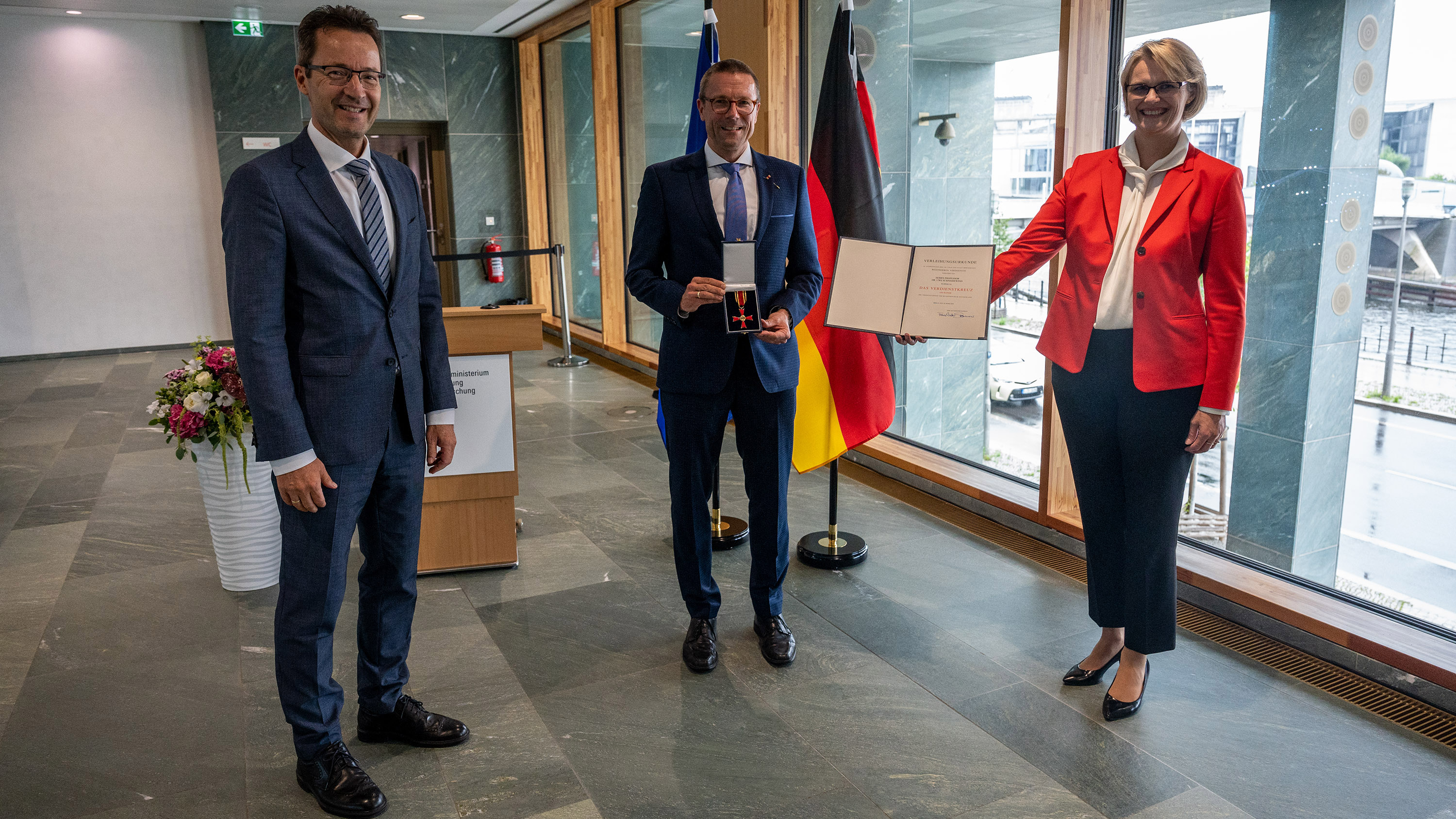 Das ehemalige Vorstandsmitglied der Johannes-Rau-Forschungsgemeinschaft (JRF) und der wissenschaftliche Geschäftsführer des Wuppertal Instituts, Professor Dr. Uwe Schneidewind, wurde auf Vorschlag des Bundesforschungsministeriums (BMBF) von Bundespräsident Frank-Walter Steinmeier mit dem Verdienstkreuz am Bande des Verdienstordens der Bundesrepublik Deutschland ausgezeichnet. Am 15. Juli 2020 überreichte ihm Bundesforschungsministerin Anja Karliczek das Bundesverdienstkreuz während eines Festakts im kleinen Rahmen in Berlin. Er wurde damit für sein herausragendes wissenschaftliches Engagement und seine Impulse zur Weiterentwicklung der Nachhaltigkeits- und Transformationsforschung geehrt.
