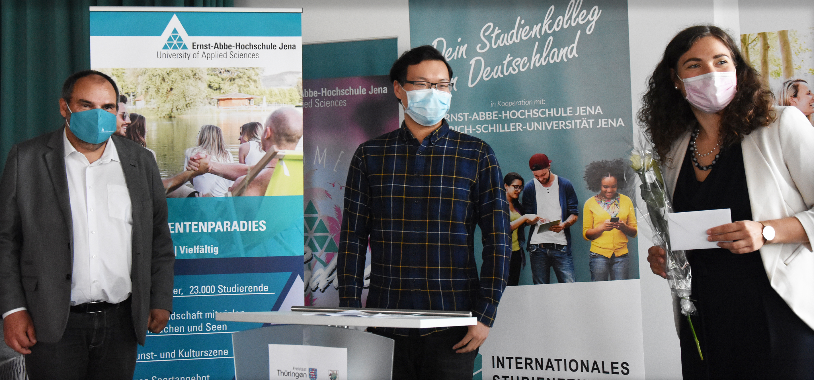 Gestern gratulierte Steffen Teichert, Rektor der EAH Jena, 22 Absolventinnen und Absolventen des Internationalen Studienzentrums Thüringen zur bestandenen Feststellungsprüfung. Die Veranstaltung in der EAH-Aula war, coronabedingt, ungewöhnlich oder sollte man besser sagen „Corona-gewöhnlich“?