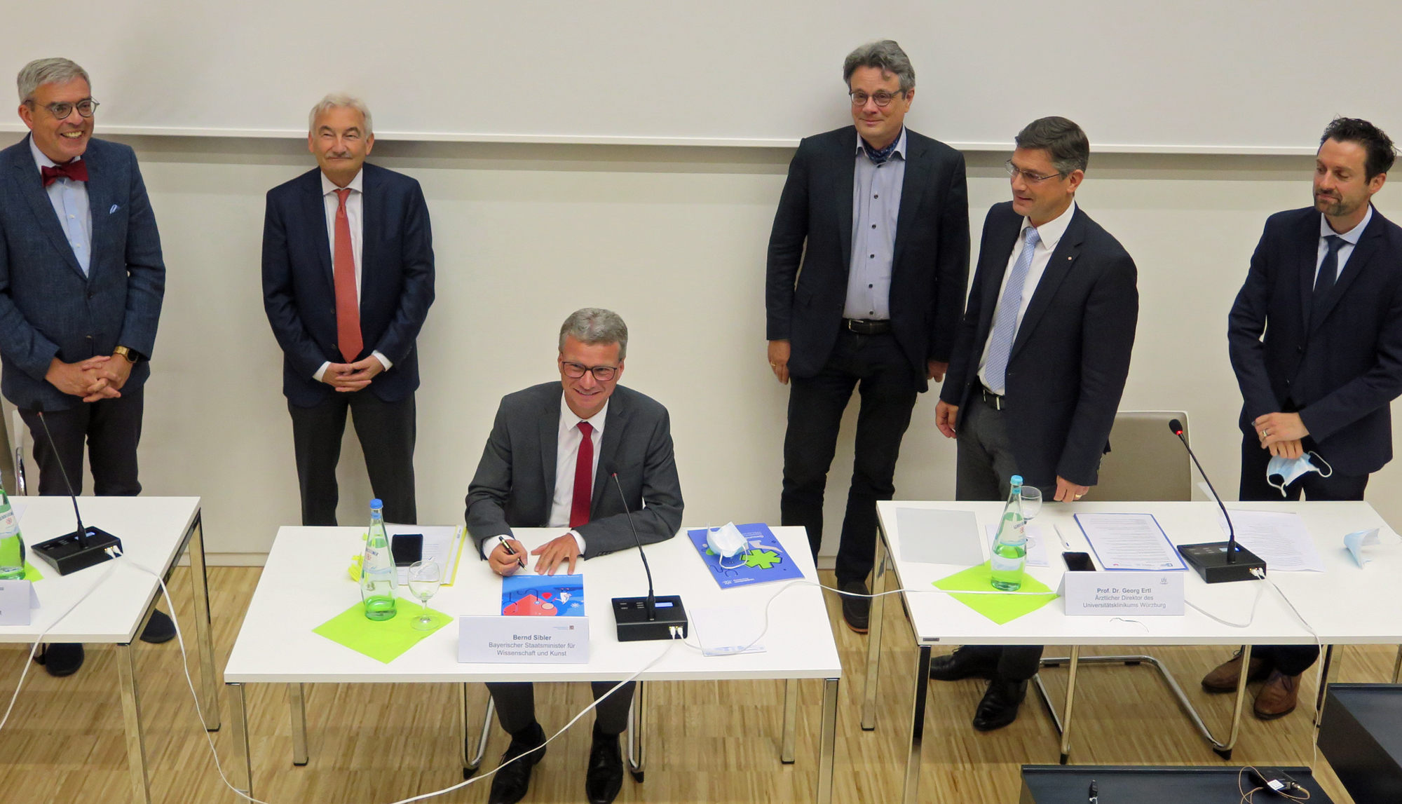 Es sind zukunftsweisende Investitionen, die das Bayerische Wissenschaftsministerium kürzlich tätigte. Zum einen fördert es das Würzburger STAAB-COVID-Programm mit 1,5 Millionen Euro. Zum anderen wurde in der vergangenen Woche der Planungsauftrag für essentielle Neubauvorhaben des Uniklinikums Würzburg erteilt. Beide Projekte wurden gestern bei einer Pressekonferenz mit Staatsminister Bernd Sibler im Deutschen Zentrum für Herzinsuffizienz Würzburg präsentiert.
