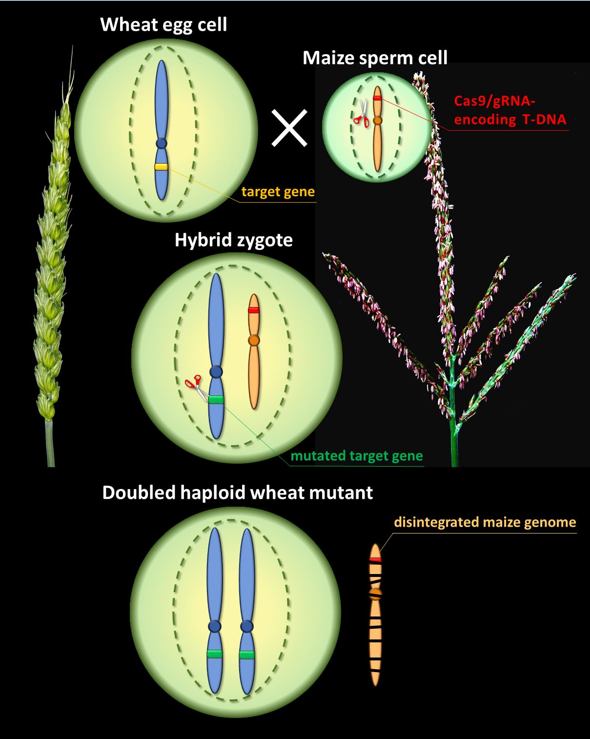 Zielgerichtete Mutagenese bei Weizen nach Übertragung von CRISPR-RNA und Cas-Endonuklease durch Bestäubung mit Mais