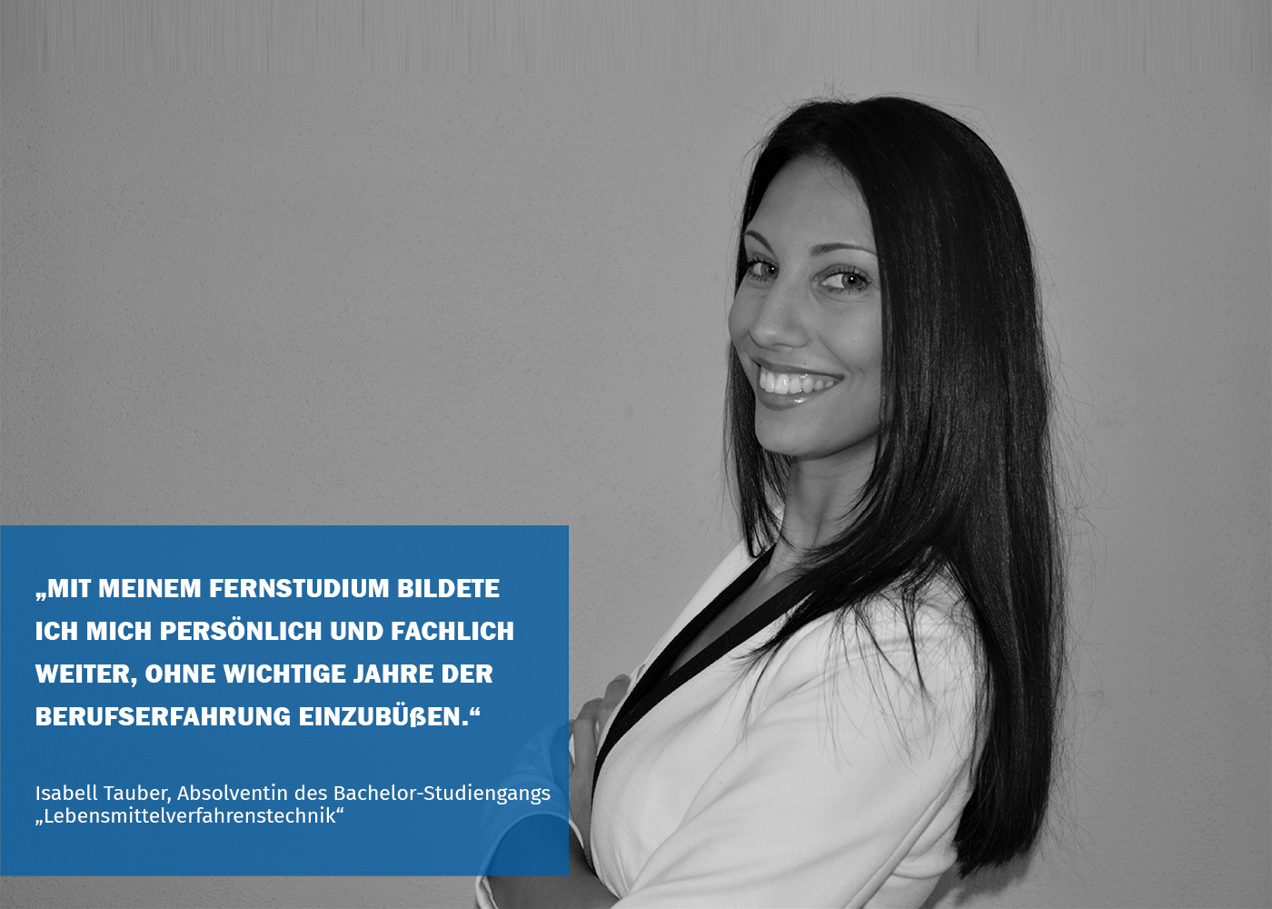 „Mit meinem Fernstudium bildete ich mich persönlich und fachlich weiter, ohne wichtige Jahre der Berufserfahrung einzubüßen.“ Isabell Tauber ist die erste Absolventin des Bachelorstudiengangs Lebensmittelverfahrenstechnik an der Wilhelm Büchner Hochschule – hier berichtet sie von ihren Erfahrungen.