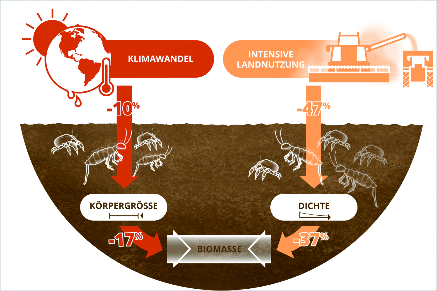 Das Schrumpfen der Zwerge: Durch den Klimawandel werden Bodentiere kleiner, durch eine intensive Landnutzung weniger