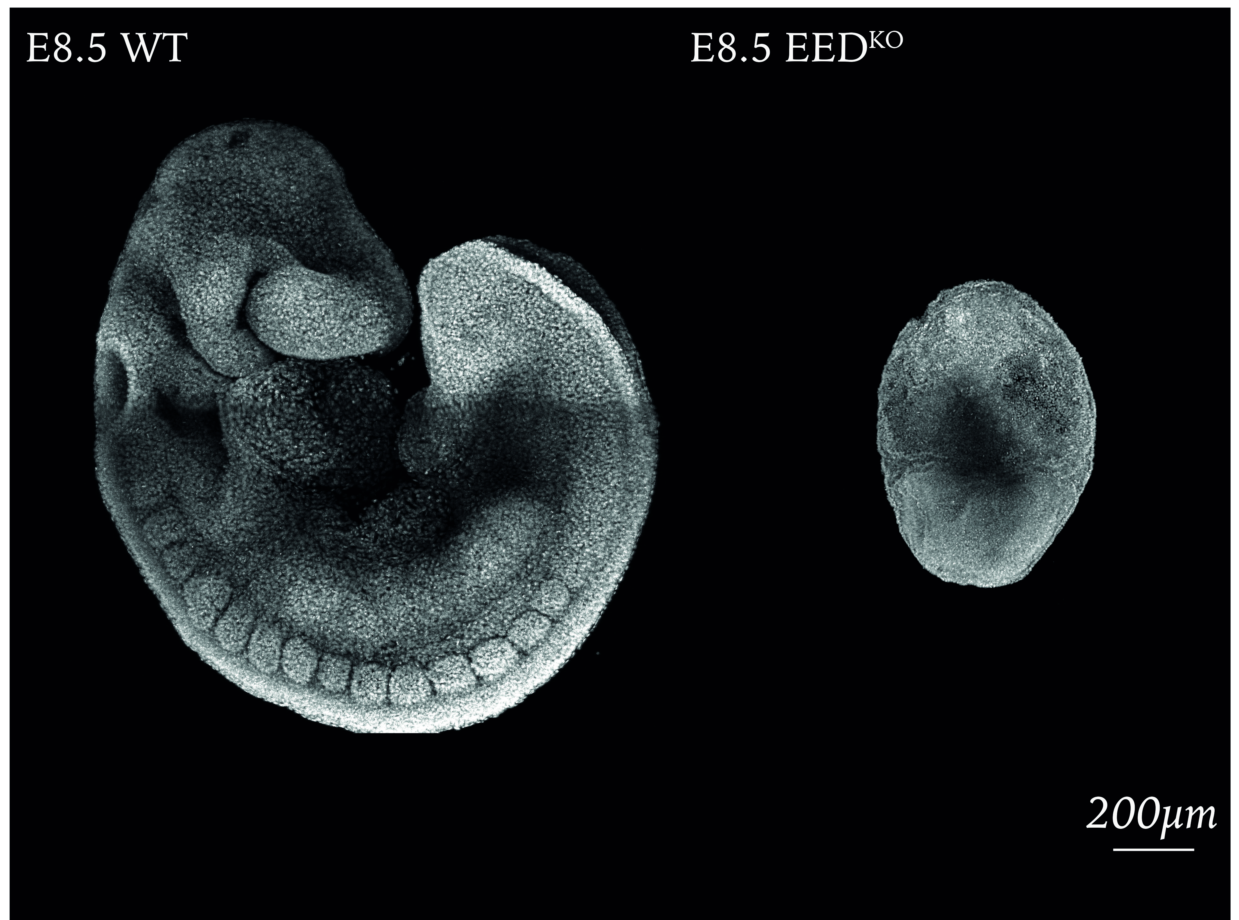 Removing the epigenetic regulator Polycomb (PRC2) had a particularly striking impact. “Without PRC2, the embryo looks egg-shaped and very small after eight and a half days, which is very unusual,” says Kretzmer. “We see vast changes to how DNA is packaged that happens much earlier, long before the embryo develops morphological abnormalities.”