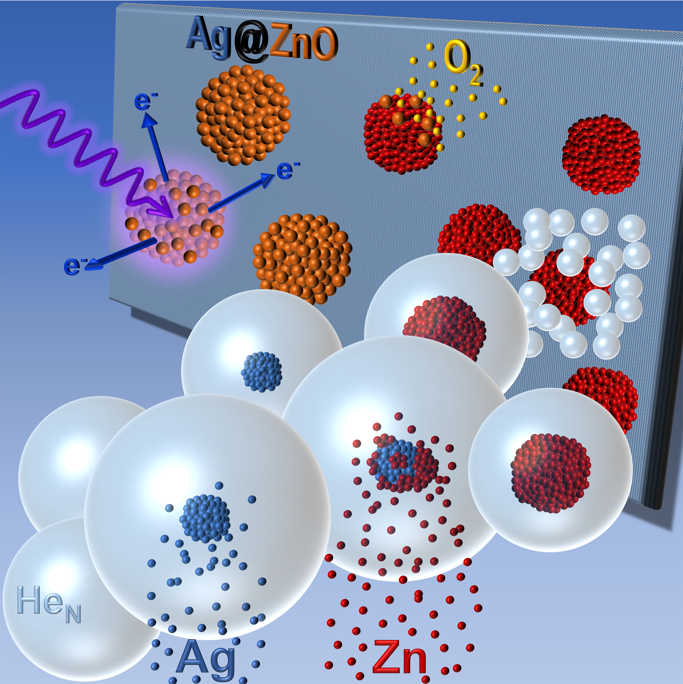 In Nano Research, Ernst and his team now report on the targeted formation of so-called core-shell clusters using helium-droplet synthesis. The clusters have a 3-nanometer core of silver and a 1.5-nanometer-thick shell of zinc oxide. Zinc oxide is a semiconductor that is used, for example, in radiation detectors for measuring electromagnetic radiation or in photocatalysts for breaking down organic pollutants. The special thing about the material combination is that the silver core provides a plasmonic resonance, i.e. it absorbs light and thus causes a high light field amplification. This puts electrons in an excited state in the surrounding zinc oxide, thereby forming electron-hole pairs – small portions of energy that can be used elsewhere for chemical reactions, such as catalysis processes directly on the cluster surface. "The combination of the two material properties increases the efficiency of photocatalysts immensely. In addition, it would be conceivable to use such a material in water splitting for hydrogen production," says Ernst, naming a field of application.