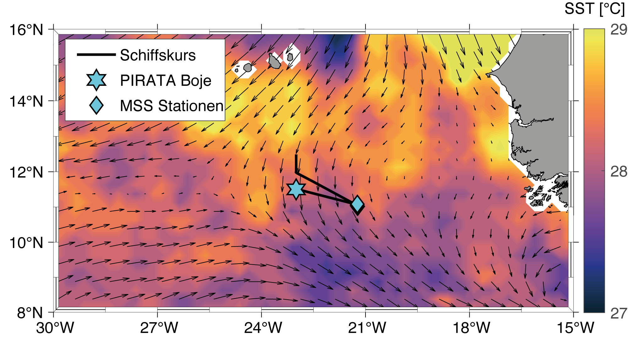 Die Meeresoberflächentemperaturen in den Tropen haben einen großen Einfluss auf das Klima in den Tropen und der angrenzenden Kontinente. Zum Beispiel entscheiden sie über die Position der Intertropischen Konvergenzzone und den Beginn und die Stärke des Westafrikanischen Monsuns. Deshalb ist es auch im Hinblick auf Klimavorhersagen wichtig, die Variabilität der Meeresoberflächentemperaturen zu verstehen. Bisher konnte der saisonale Verlauf der Meeresoberflächentemperatur im tropischen Nordatlantik nicht hinreichend erklärt werden. „Genauer gesagt ist die Meeresoberfläche vor allem in den Sommermonaten von Juli bis September kälter als durch die bisherigen direkten Beobachtungen von Sonneneinstrahlung, Strömungen und Vermischung erklärt werden konnte“, erläutert Dr. Rebecca Hummels vom GEOMAR Helmholtz-Zentrum für Ozeanforschung Kiel und Erstautorin einer Studie, die jetzt in Nature Communications erschienen ist.