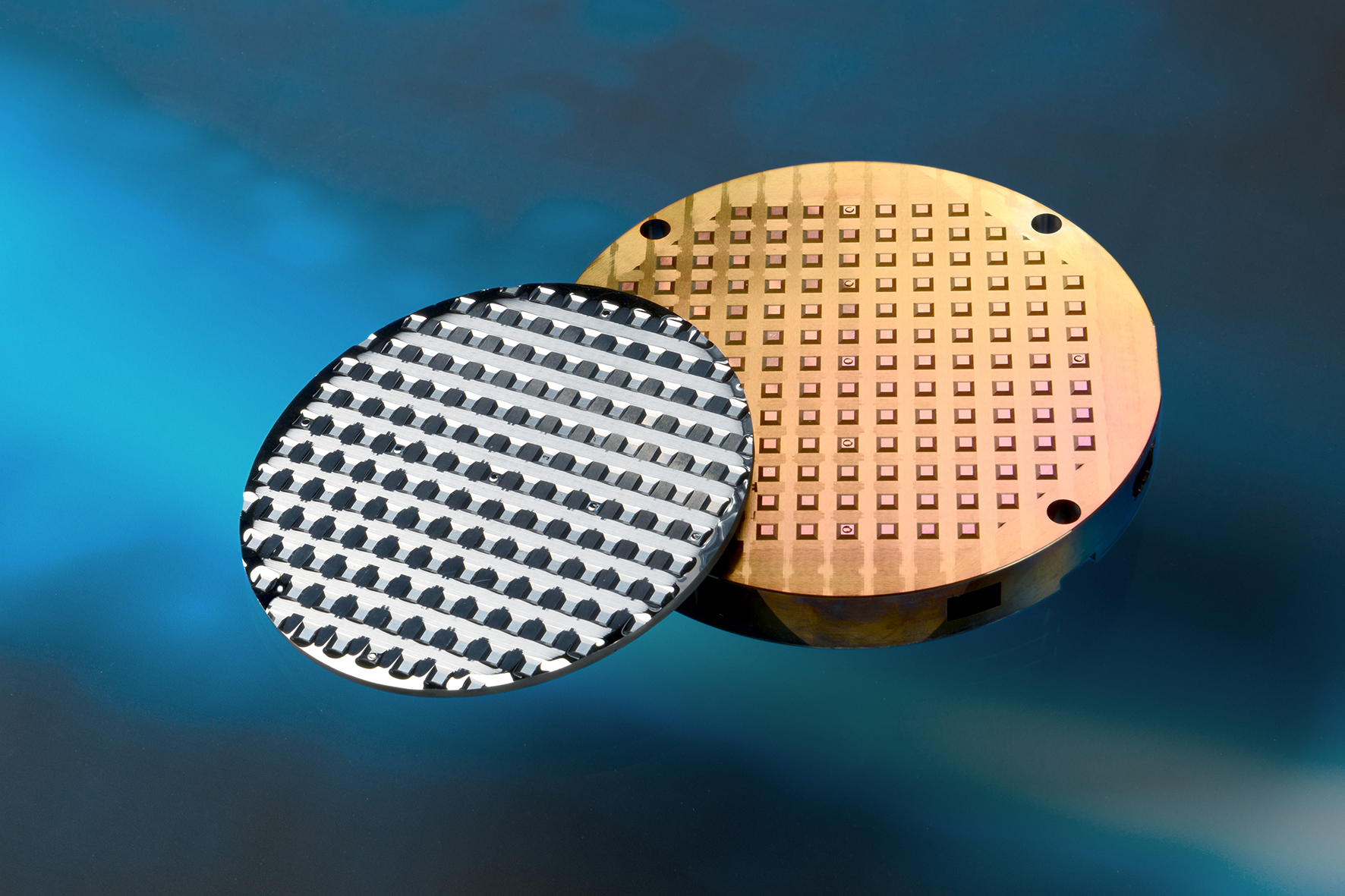 Anschließend haben die Projektpartner ein skalierbares Werkzeugkonzept und den dazugehörigen Formenbau entwickelt sowie die Werkzeugbeschichtung weiterentwickelt: Je nach Geometrie der Optik lassen sich Mehrfachwerkzeuge einsetzen und sogar Wafer mit einer Anzahl von bis zu 500 Infrarotoptiken pro Pressprozess herstellen.