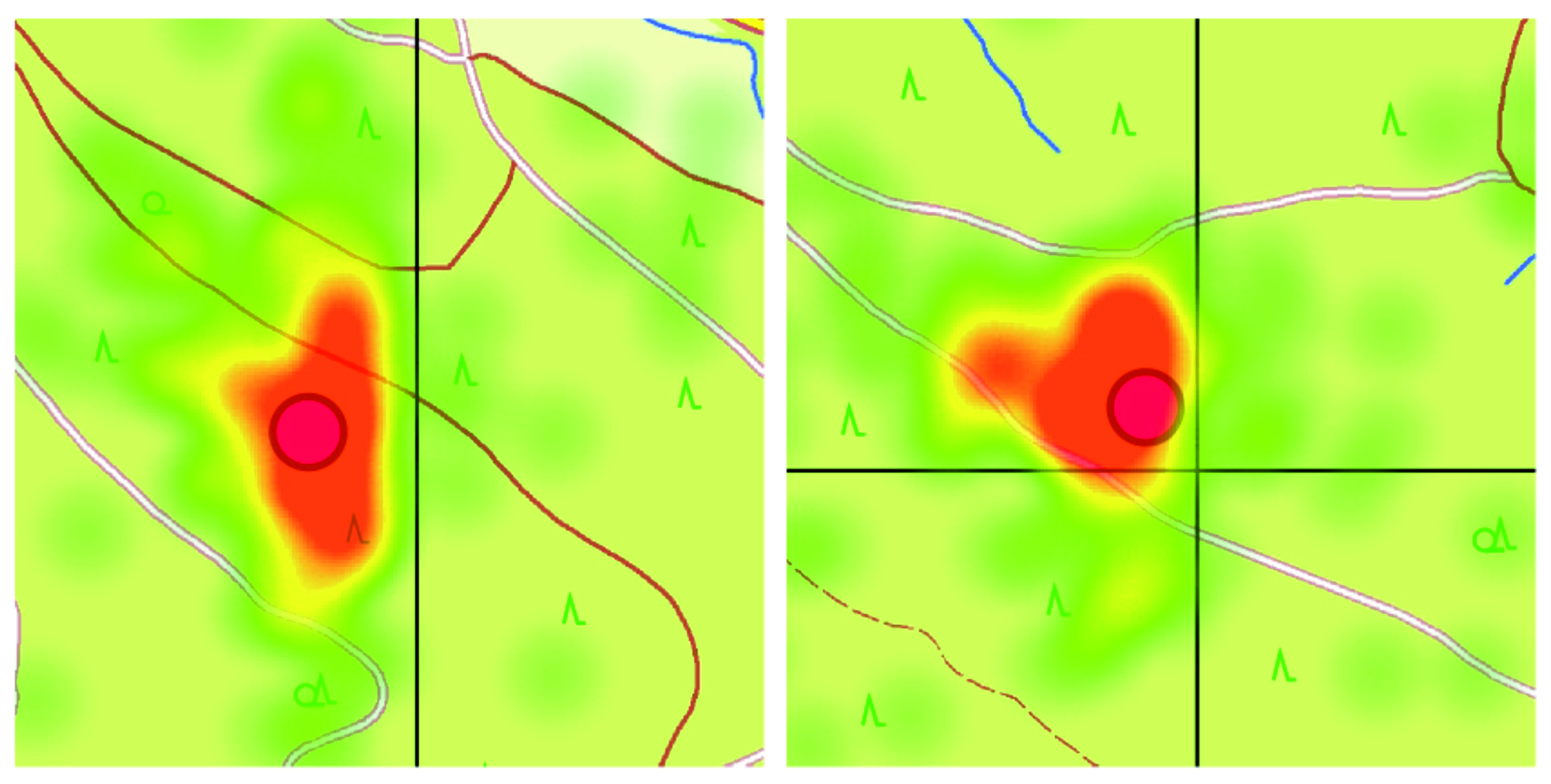 „Erstmals konnten wir zeigen, wie die regelmäßigen Gitterstrukturen in kartografischen Darstellungen den Wahrnehmungsprozess während des Kartenlesens beeinflussen“, berichtet Frank Dickmann. Sogenannte Heatmaps dokumentieren deutliche Auslenkungseffekte auf die Blickrichtung entlang der Gitterlinien. „Überraschend war, dass Gitterstrukturen einen solchen Einfluss ausüben, ohne dabei selbst besondere Aufmerksamkeit des Betrachters hervorzurufen“, so der Forscher.