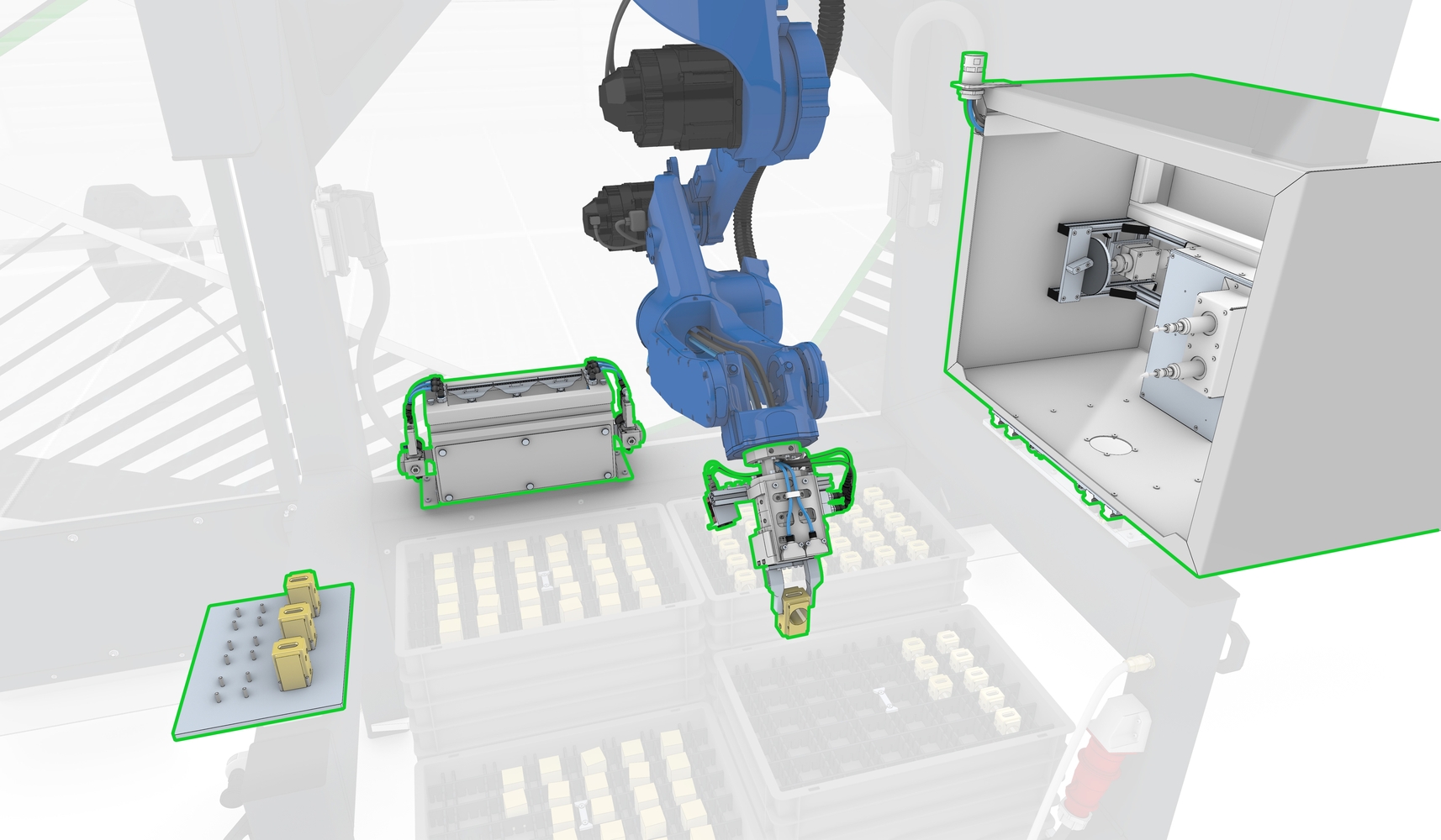 »Robotern die kognitiven Fähigkeiten zu geben, Informationen aus ihrer Umgebung zu verarbeiten, die richtigen Schlüsse aus ihnen zu ziehen und nötige Aktionen auszuführen, ist eine unserer Kernkompetenzen am Fraunhofer IWU. Deswegen bestand unser Teil der Kooperation vor allem aus der Konzeption und Ausgestaltung der Steuerungssoftware für die Automatisierung und der Auswertung der Bildinformationen«, ergänzt Dr. Hellmich. »Dabei wurde ein fähigkeitsbasiertes Steuerungskonzept umgesetzt, durch welches Programmabläufe flexibel zusammengestellt werden können. Zudem wurden die Analysealgorithmen für die optischen Systeme so entwickelt, dass sie unter verschiedenen Beleuchtungsbedingungen funktionieren«.