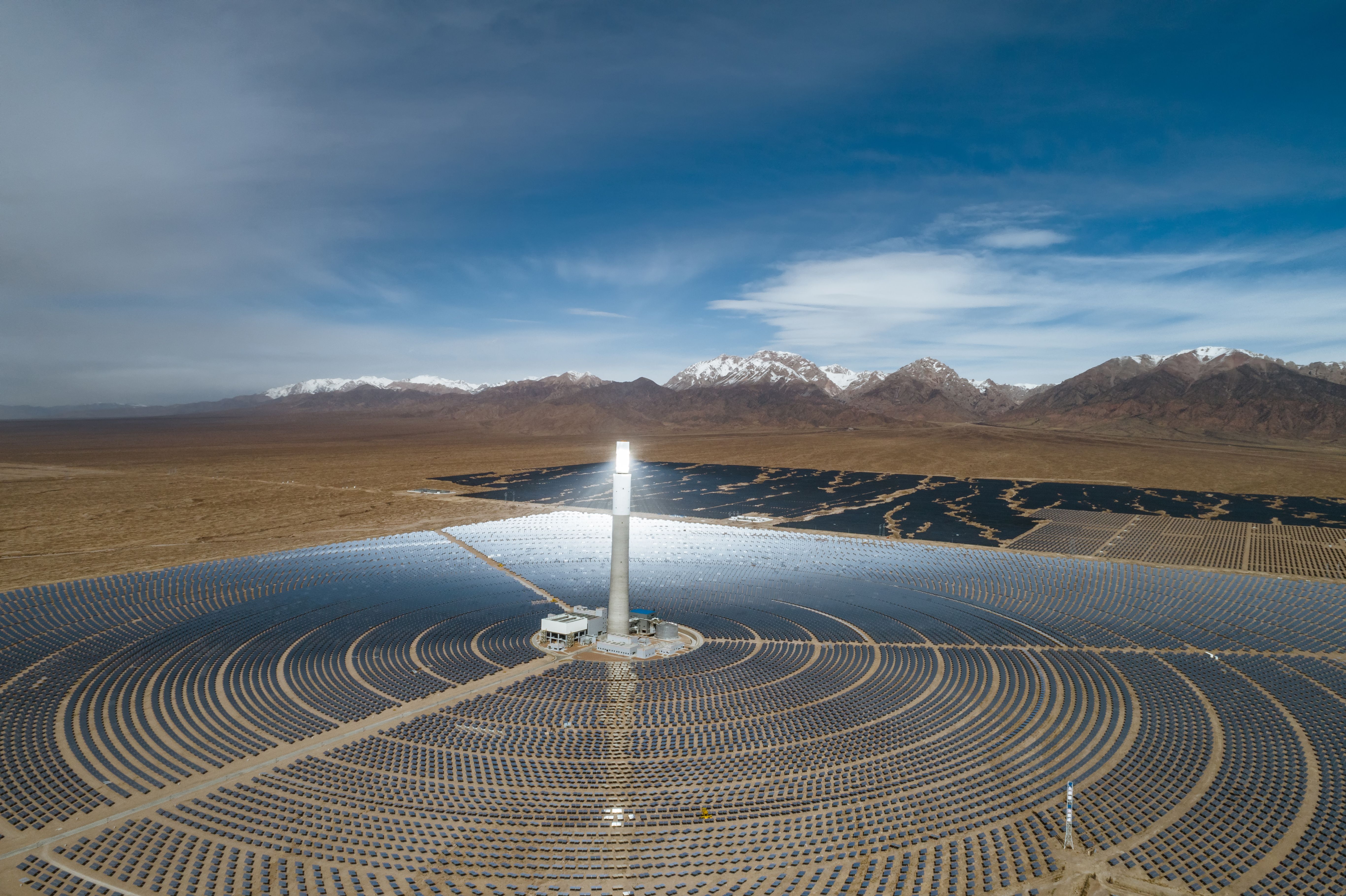 In Turmkraftwerken konzentrieren hunderte bis mehrere 10.000 oder sogar 100.000 Spiegel die Sonnenstrahlen auf einen zentralen Absorber (Receiver) an der Spitze eines Turmes, in dem ein Wärmeträgermedium (z.B. Salzschmelze) erhitzt wird. Dieses wird anschließend zur Erzeugung von Dampf genutzt, der eine Turbine antreibt. In Verbindung mit einem thermischen Speicher wird die Wärme auch nachts zur Stromerzeugung genutzt.