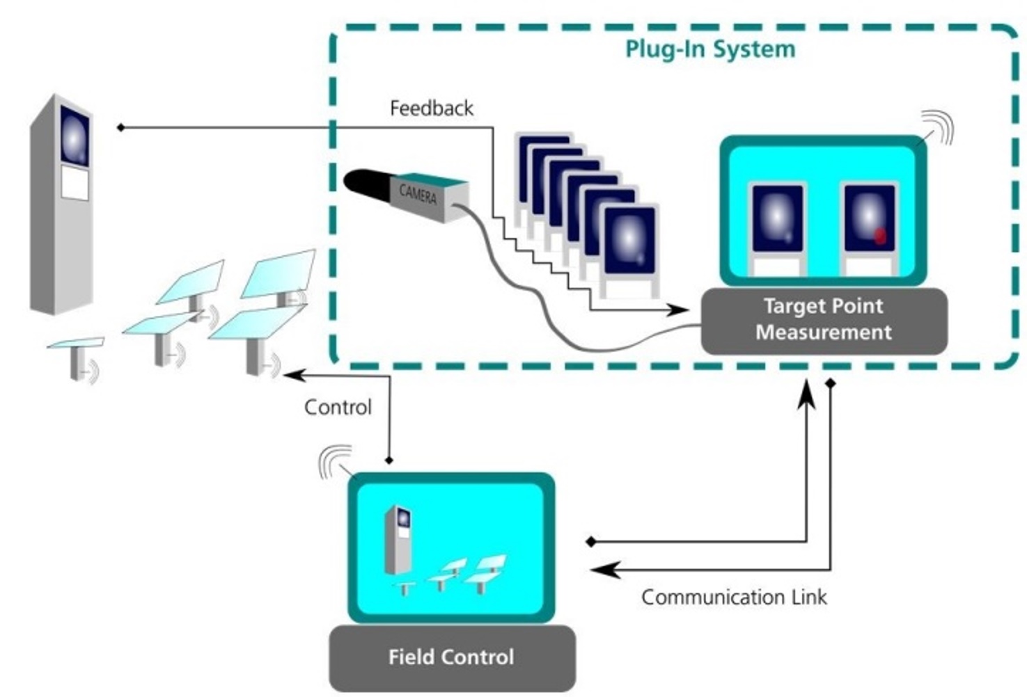 Mit der Überprüfung der Zielpunkte und einer entsprechenden Nachregelung werden die Anforderungen an die intrinsische Präzision der Antriebe und an das Getriebespiel in der Kraftübersetzung gesenkt. Die präzise und homogene Ausrichtung der Zielpunkte vermeidet auch sogenannte »Hot-Spots« – lokale Regionen mit überhöhter Temperatur – die zu schweren Schäden am Receiver führen können. Dies erhöht sowohl die Lebensdauer als auch die thermische Effizienz des Empfängers, da er näher an der Maximaltemperatur betrieben werden kann.