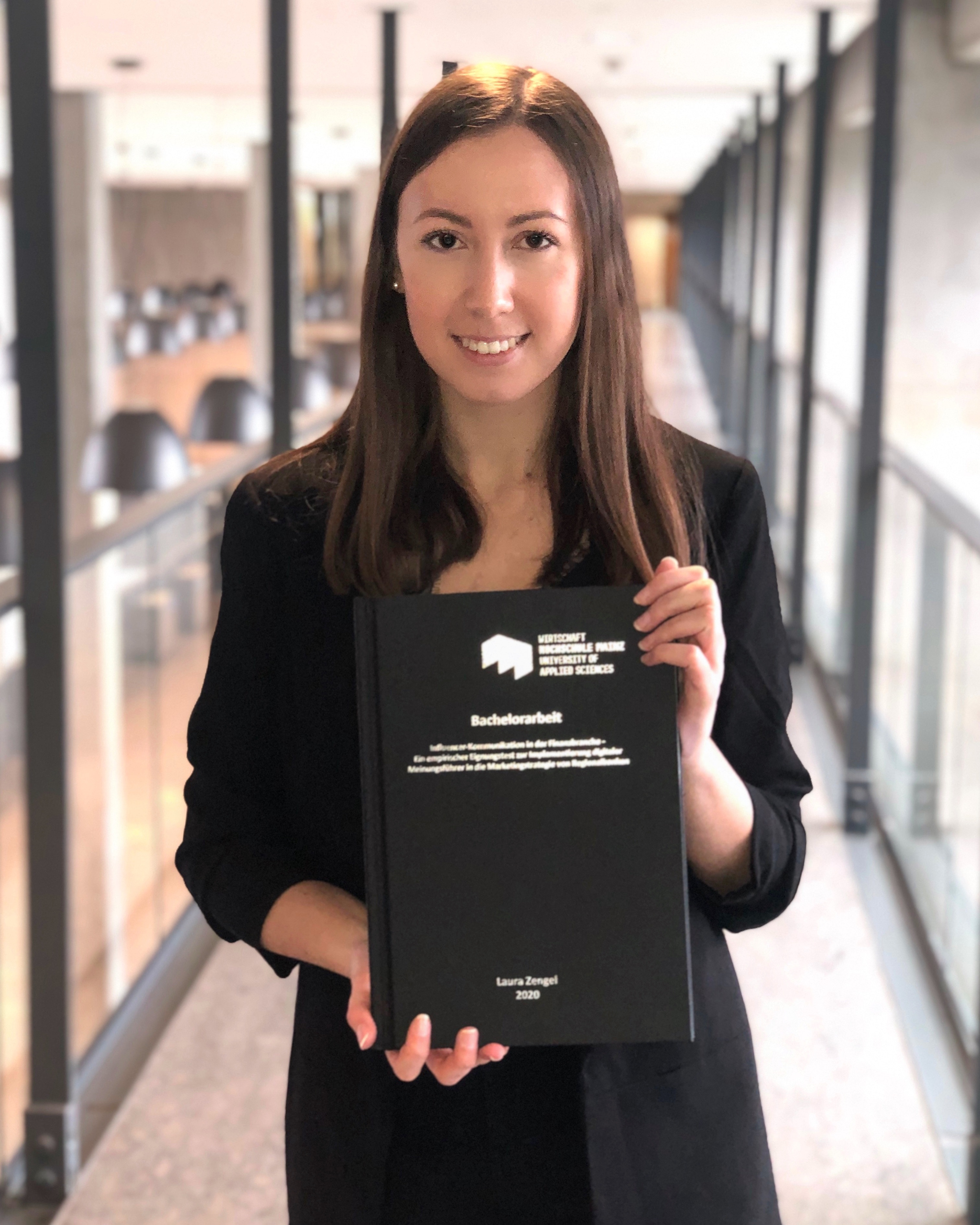 Laura Zengel, Absolventin am Fachbereich Wirtschaft der Hochschule Mainz, ist mit dem Alfred Gerardi Gedächtnispreis 2020 (AGGP) in der Kategorie „Beste Bachelorarbeit“ ausgezeichnet worden. Mit ihrer Abschlussarbeit „Influencer – Kommunikation in der Finanzbranche – Ein empirischer Eignungstest zur Implementierung digitaler Meinungsführer in die Marketingstrategie von Regionalbanken“ überzeugte die 24-Jährige die Jury und erhielt den mit 2.500 Euro dotierten Preis. Betreut wurde die Arbeit von Prof. Dr. Heinrich Holland.