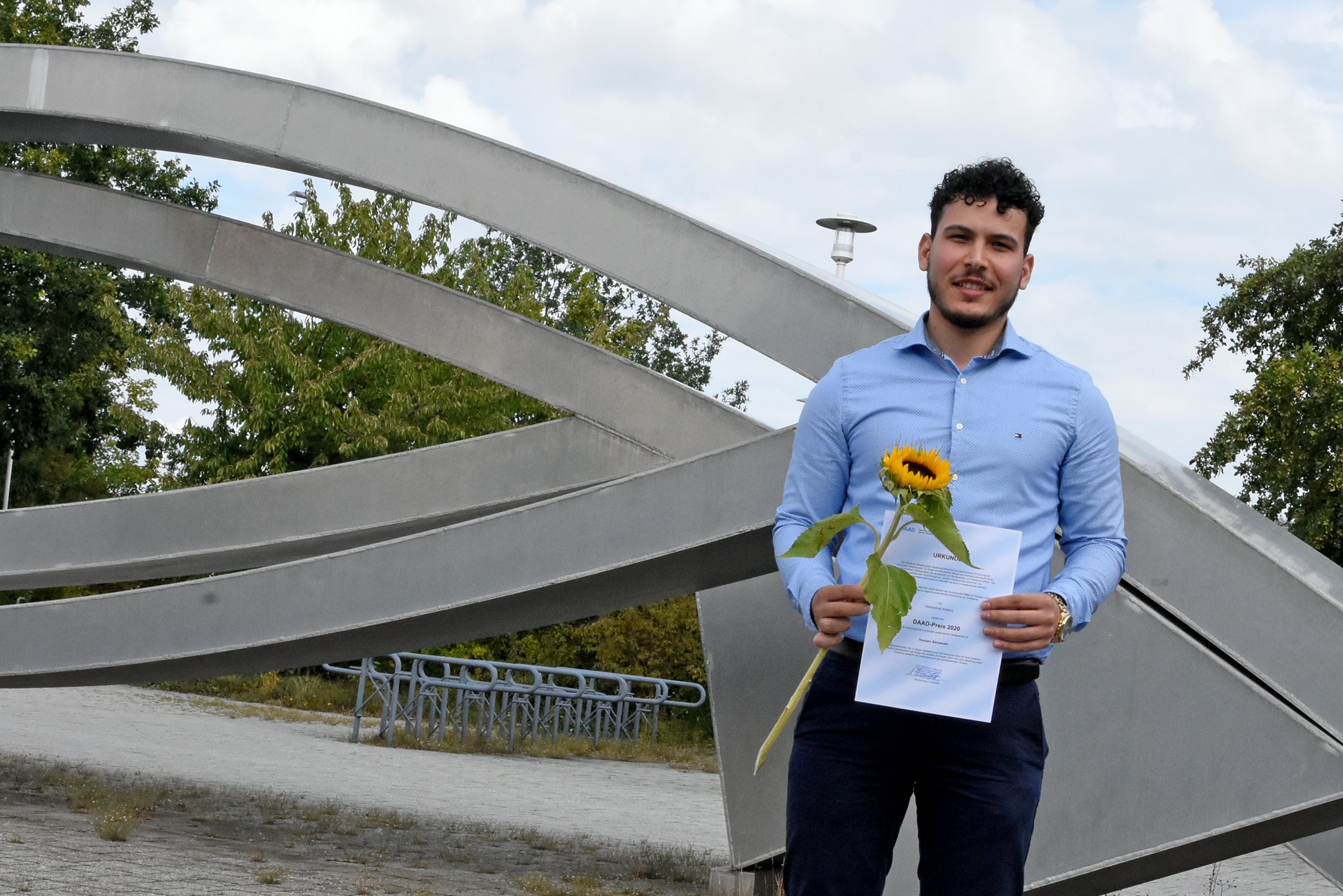 KOBLENZ. Der mit 1.000 Euro dotierte DAAD-Preis zeichnet jedes Jahr herausragende internationale Studierende aus, die sich sowohl durch besondere akademische Leistungen als auch bemerkenswertes gesellschaftliches oder interkulturelles Engagement hervorgetan haben. In diesem Jahr konnte der syrische Architektur-Student Hussam Alshawakh die Jury durch sein hohes soziales Engagement auf vielen Ebenen und ausgezeichnete Studienleistungen überzeugen. Als Jahrgangsbester schloss er im Juli 2020 sein Bachelor-Studium ab.
