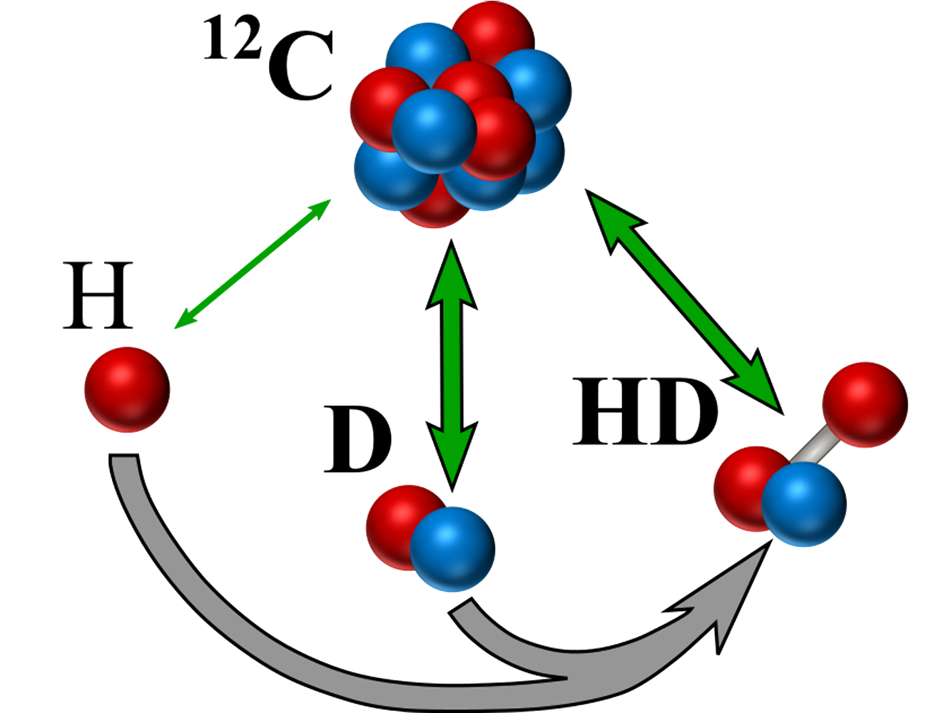 Hochpräzise Messungen der Masse des Deuterons, des Kerns von schwerem Wasserstoff, bringen neue Erkenntnisse über die Zuverlässigkeit fundamentaler Größen der Atom- und Kernphysik. Das berichtet eine Kollaboration unter der Leitung des MPI für Kernphysik mit Partnern der Johannes Gutenberg-Universität Mainz, des GSI Helmholtzzentrums für Schwerionenforschung Darmstadt sowie des Helmholtz-Instituts Mainz in der Fachzeitschrift „Nature“. Damit stehen nun direkt auf den atomaren Massenstandard bezogene Daten für Wasserstoff H, Deuterium D und das Molekül HD, das die Wissenschaftler ebenfalls neu gewogen haben, zur Verfügung.