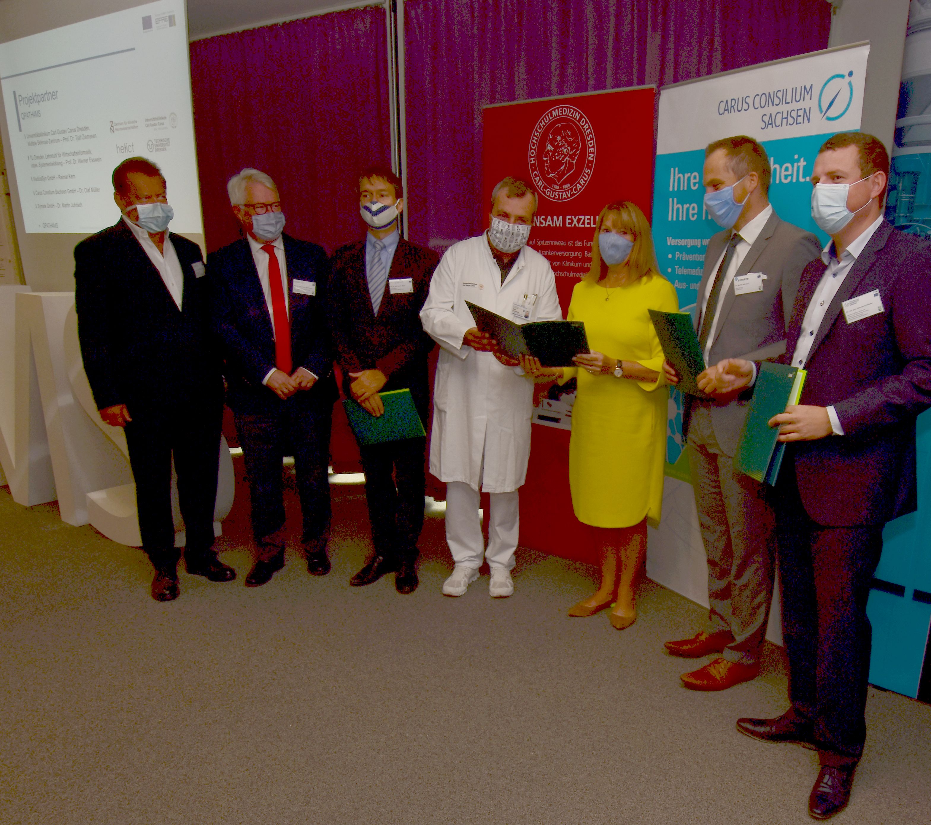 „Dank der nachhaltigen Unterstützung der Europäischen Union und des Freistaates Sachsen gelangen digitale Lösungen der innovativen Gesundheitsversorgung dorthin, wo sie benötigt werden: zu den Menschen im Land, den chronisch Kranken und ihren unermüdlich arbeitenden Ärzten und Pflegern“, ergänzt Dr. Olaf Müller, Geschäftsführer der Carus Consilium Sachsen GmbH.