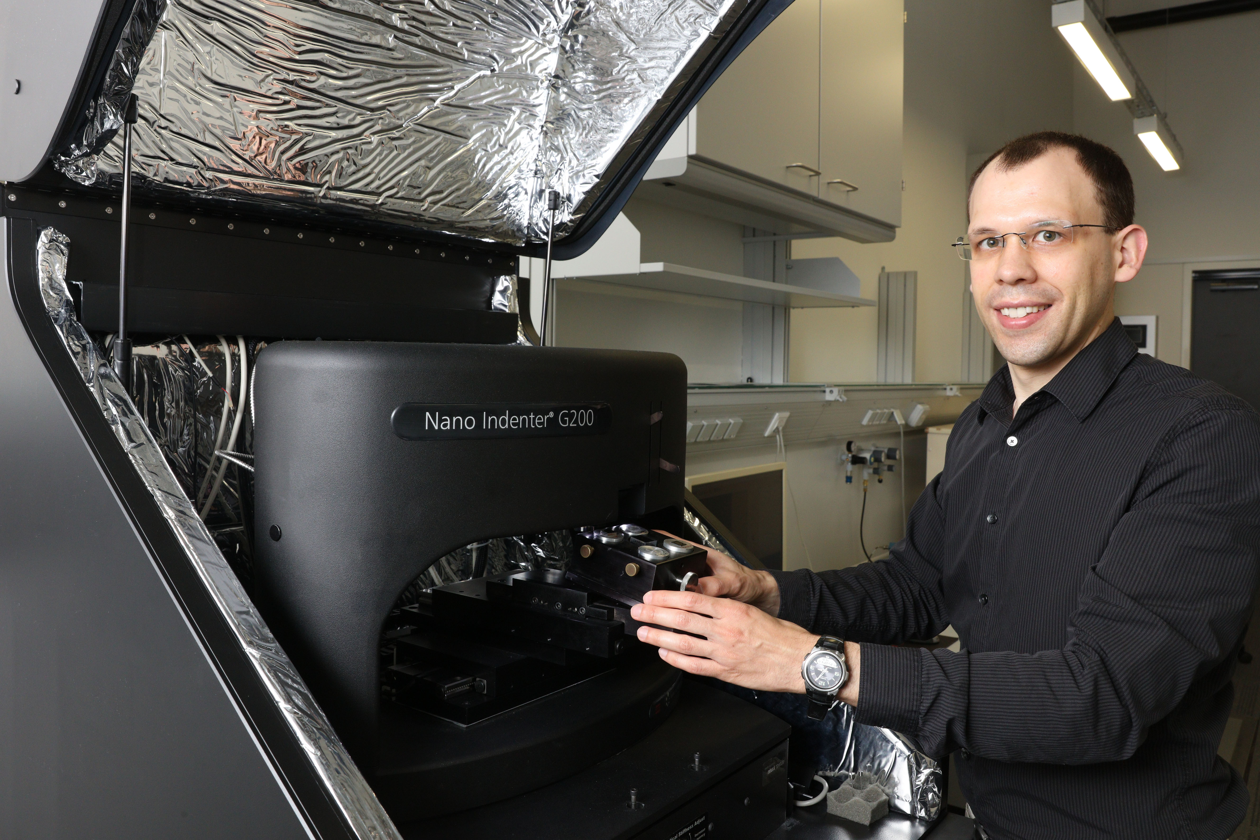 Eine seiner ersten Anschaffungen aus den Mitteln des Starting Grant: der Prototyp eines ultraschnellen Nanoindenters, der mit etwa einer Viertelmillion zu Buche schlägt.