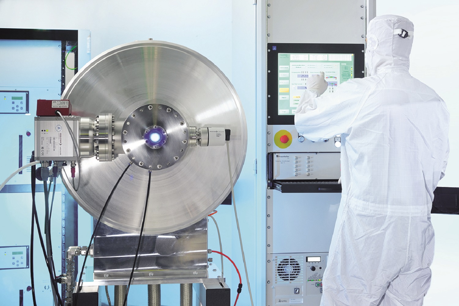 The principle also works with wavelengths in the extreme ultraviolet (EUV). The Aachen-based institute has developed its own beam source for this purpose, the »FS5440«. Based on a gas discharge, the source can generate the required radiation at 13.5 nm wavelength. It is considerably more compact than the laser-based EUV source used in large-scale industrial facilities. Nevertheless, the performance is more than sufficient for many applications in the production or measurement of nanostructures.