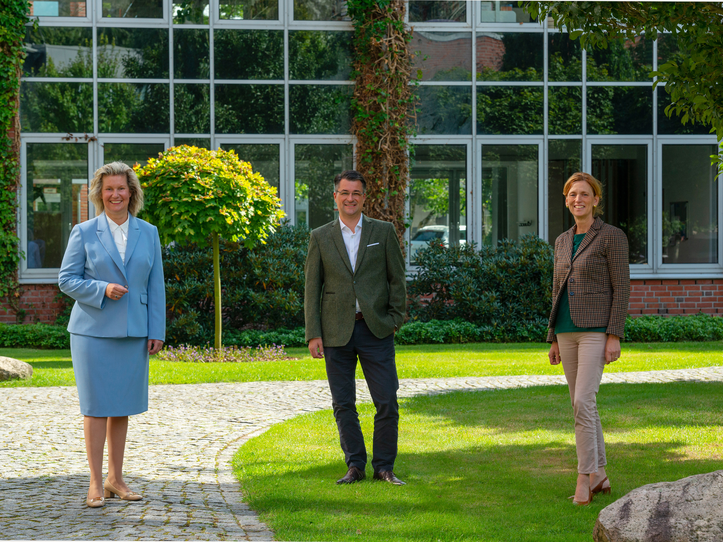 Gemeinsam mit Vorstand Christoph Fülscher empfing Hochschulpräsidentin Univ.-Prof. Dr. Kerstin Fink am Freitagnachmittag Schleswig-Holsteins Bildungsministerin Karin Prien und Ralf Kopischke, stellvertretender Referatsleiter der Abteilung Wissenschaft im Ministerium für Bildung, Wissenschaft und Kultur des Landes Schleswig-Holstein, auf dem Campus. Da Prof. Fink ihr Amt als Präsidentin der NORDAKADEMIE zum 1. April 2020 und damit zu Beginn der Corona-Pandemie angetreten hat, erfolgte die bisherige Kommunikation auf digitalem Wege. „Ich bedanke mich für die hervorragende Zusammenarbeit zwischen dem Ministerium und den Hochschulen während der Corona-Zeit sowie die Einbindung der NORDAKADEMIE in die allgemeinen Abstimmungsprozesse“, betonte Kerstin Fink.