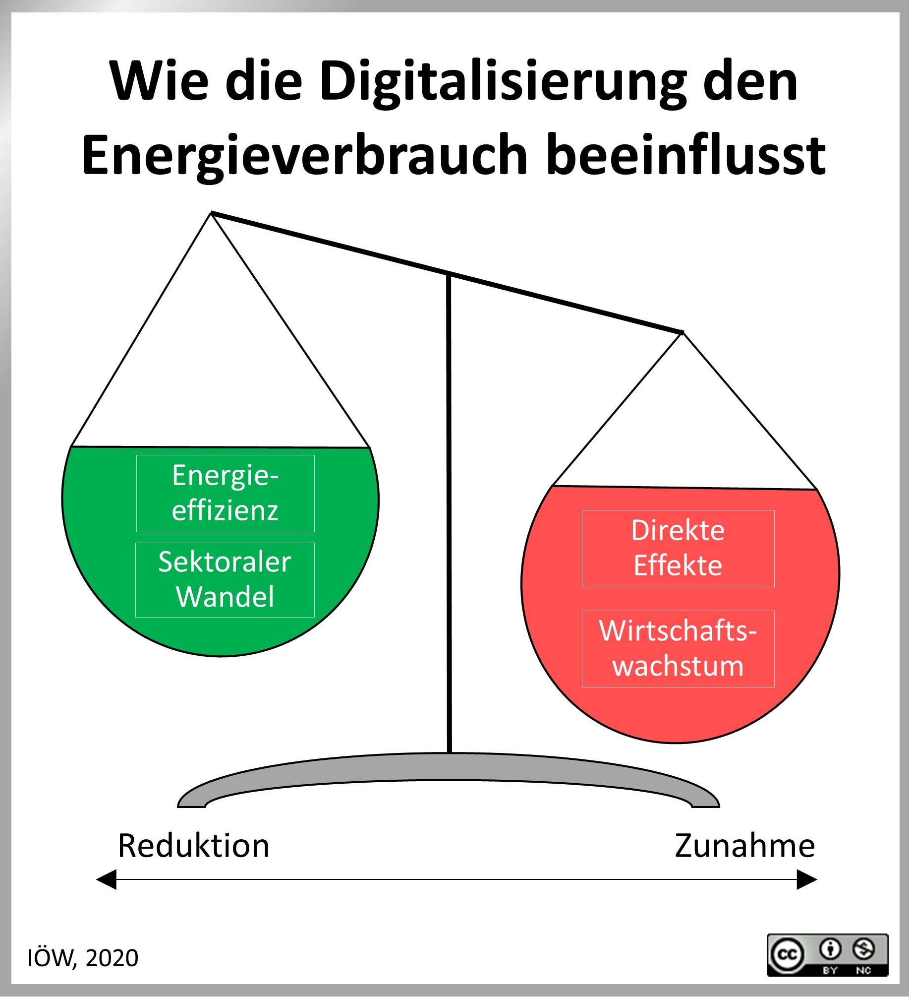 „Zwar kann durch die Digitalisierung Energie eingespart werden – durch Effizienzsteigerungen in verschiedenen Wirtschaftssektoren, aber auch bei technischen Geräten des täglichen Gebrauchs“, erläutert Wirtschaftsforscher Steffen Lange vom IÖW. „Legt man diese Einsparungen in die eine Waagschale und vergleicht sie mit den Effekten des wachsenden IKT-Sektors und den Auswirkungen des durch gesteigerte Produktivität ausgelösten Wirtschaftswachstums, wiegen die letzteren deutlich schwerer. Die Hoffnung, dass die Digitalisierung den Gesamtenergieverbrauch senkt, erfüllt sich derzeit nicht.“