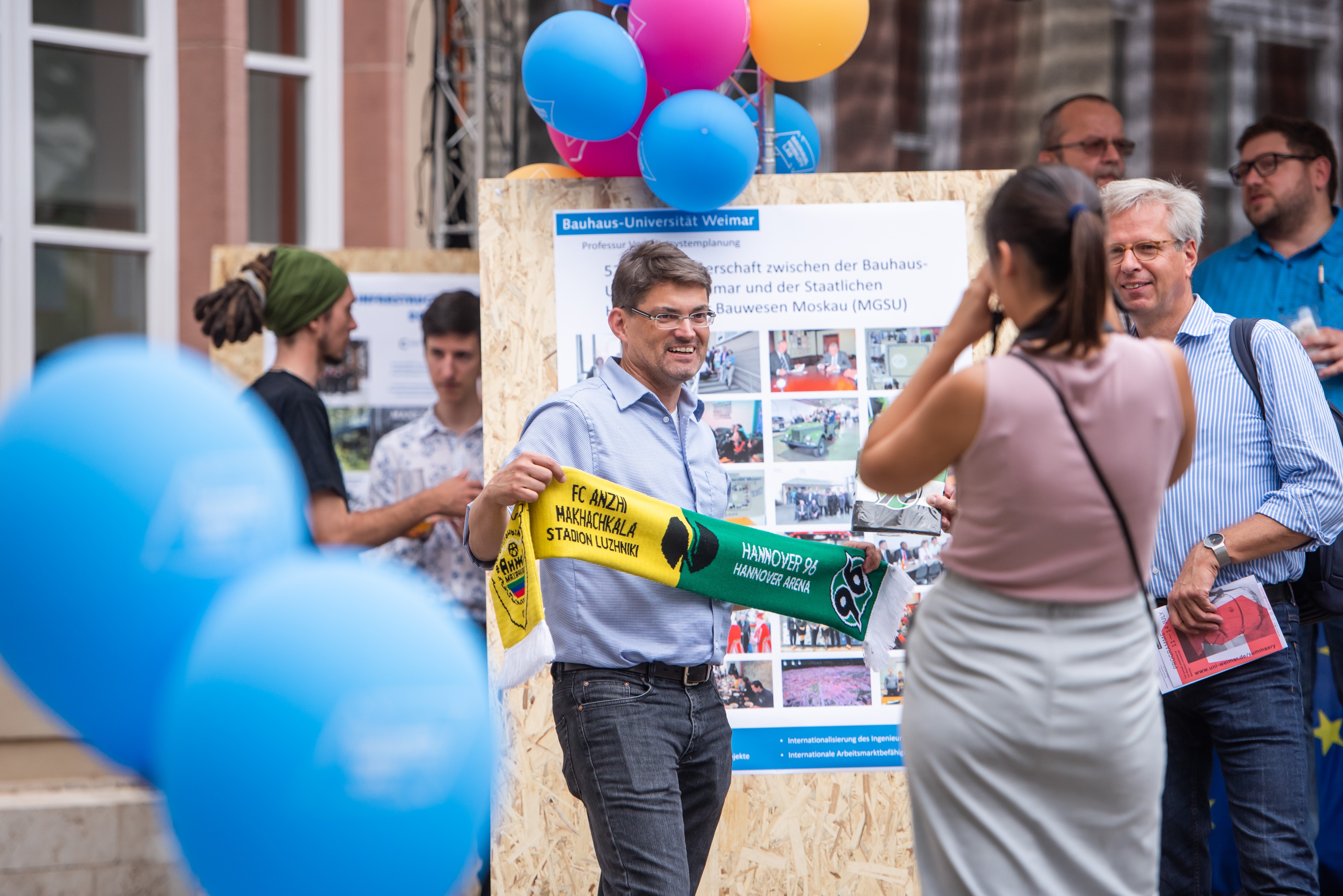 Seit 1967 pflegt die Bauhaus-Universität Weimar intensive Kontakte zur Moskauer Staatlichen Bauuniversität (MGSU). Koordiniert wurde der bilaterale Austausch jüngst maßgeblich durch Dipl.-Ing. Raimo Harder von der Professur Verkehrssystemplanung. Für sein Engagement im Rahmen der jährlich stattfindenden Denkwerkstatt »Urbane Infrastruktur« wird der wissenschaftliche Mitarbeiter am 15. September vom Deutschen Akademischen Austauschdienst (DAAD) und dem Deutschen Wissenschafts- und Innovationshaus (DWIH Moskau) in Berlin geehrt.