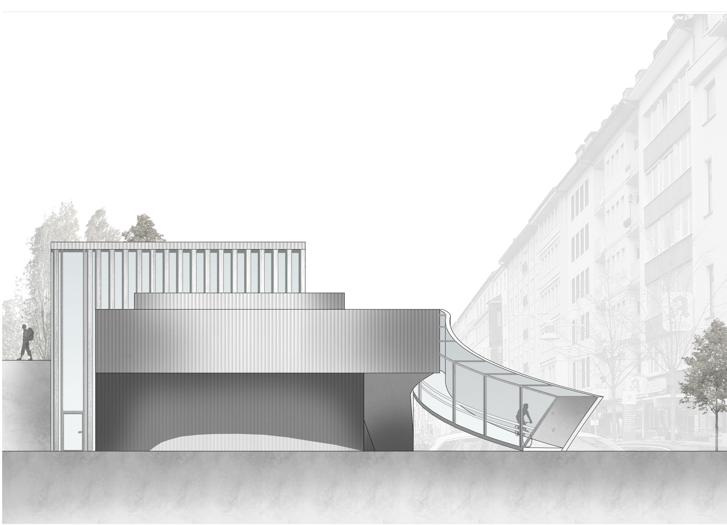 Zudem werden Exponate des Entwurfsprojektes „Fahrradparkhaus am Koblenzer Hauptbahnhof“ von verschiedenen Studierenden des Bachelor-Studiengangs Architektur ausgestellt, welche von Prof. Ulof Rückert betreut wurden. Beim Entwurf haben sich die Studierenden neben der städtebaulichen Kontextualisierung mit der Analyse der Bewegung auf dem Fahrrad auseinandergesetzt. Welche Steigungen sind radelnd in dem Parkhaus zu bewältigen? Welche Rampenbreiten sind nötig? Welche Radien müssen in Kurven angenommen werden? In mal kleinerem, mal größerem räumlichen Maßstab kreierten die Studierenden ein Zusammenspiel von Rampen und Ebenen, das von einer Basis aus geometrischen Grundformen wie Dreieck, Kreis, Ellipse und Rechteck bis hin zu futuristisch amorphen Formen reicht. An den Modellen können die Besucherinnen und Besucher mit den Studierenden ins Gespräch kommen.