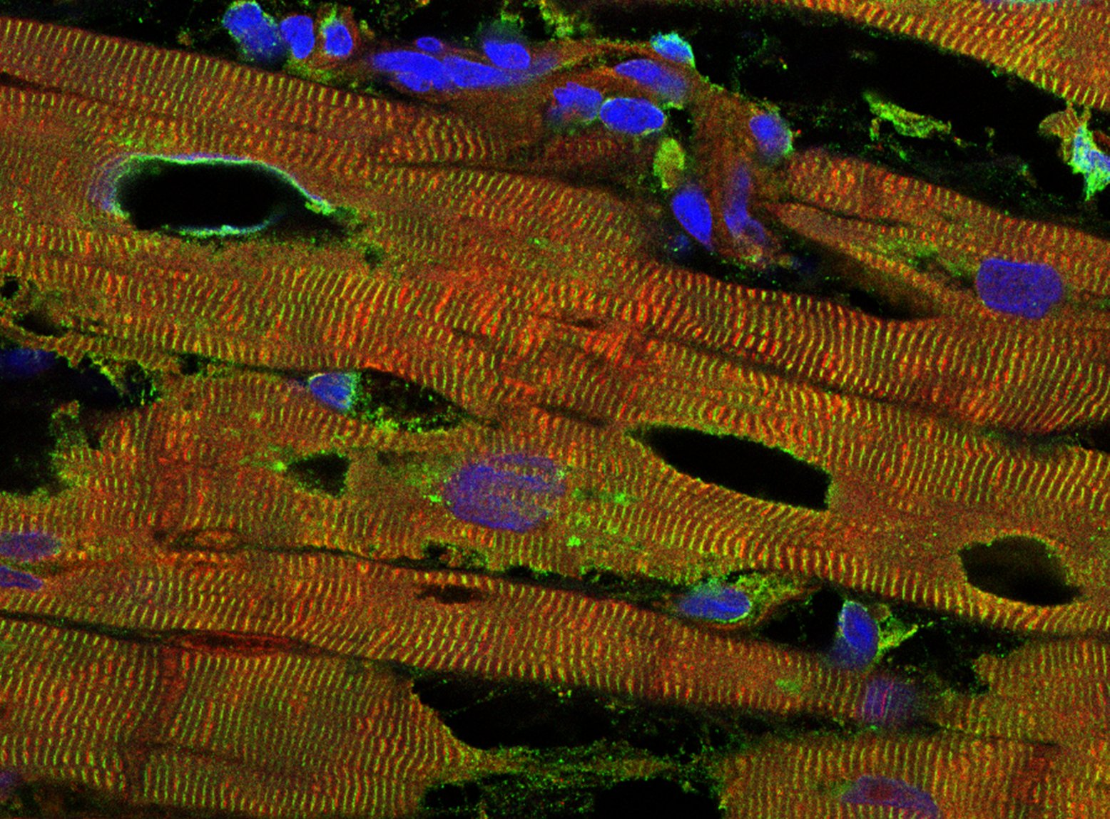 A healthy heart beats 50 to 100 times a minute and pumps 8,000 litres of blood around our body every day. A precondition for this function is the elasticity of the cardiac walls, which dilate as blood flows in (diastole) and contract again as the blood flows out (systole). Millions of tiny cavities in the heart muscle fibres, the sarcomeres, are responsible for this movement. These contractile units contain the largest protein found in the human body called titin. It has the function of a mechanical spring, which develops a restoring force during the extension of the sarcomeres – just like a rubber band.