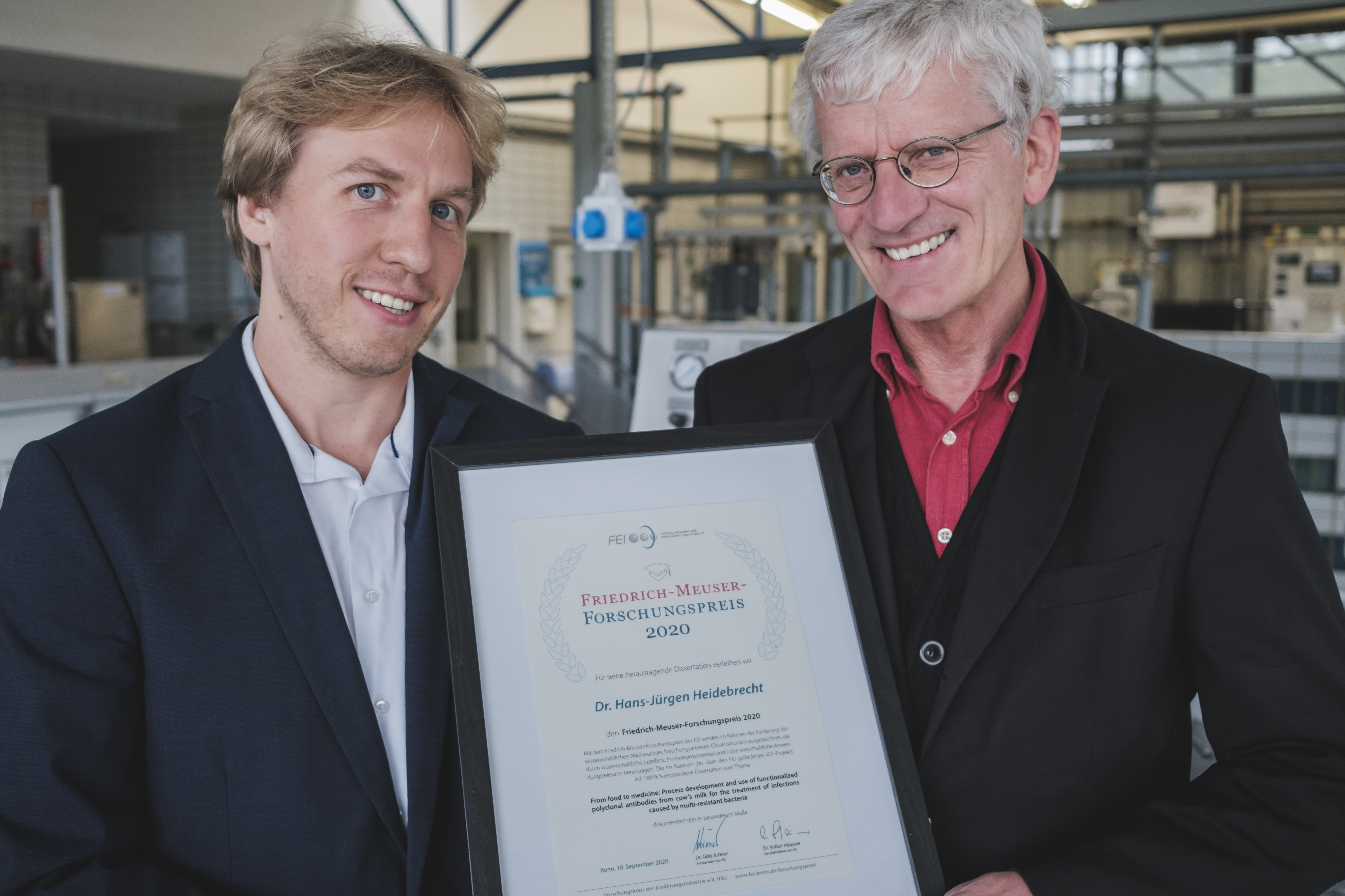 Im Einsatz bei Antibiotika-Resistenzen: Der Durchbruch zur Anwendungsreife eines innovativen Verfahrens zur Erzeugung und Gewinnung spezifischer Antikörper aus Milch gelang Dr. Hans-Jürgen Heidebrecht bei den Forschungsarbeiten für seine Dissertation, die auf einem IGF-Projekt des FEI beruht: Für seine herausragende Arbeit wird Dr. Hans-Jürgen Heidebrecht von der TU München mit dem Friedrich-Meuser-Forschungspreis 2020 des FEI ausgezeichnet.