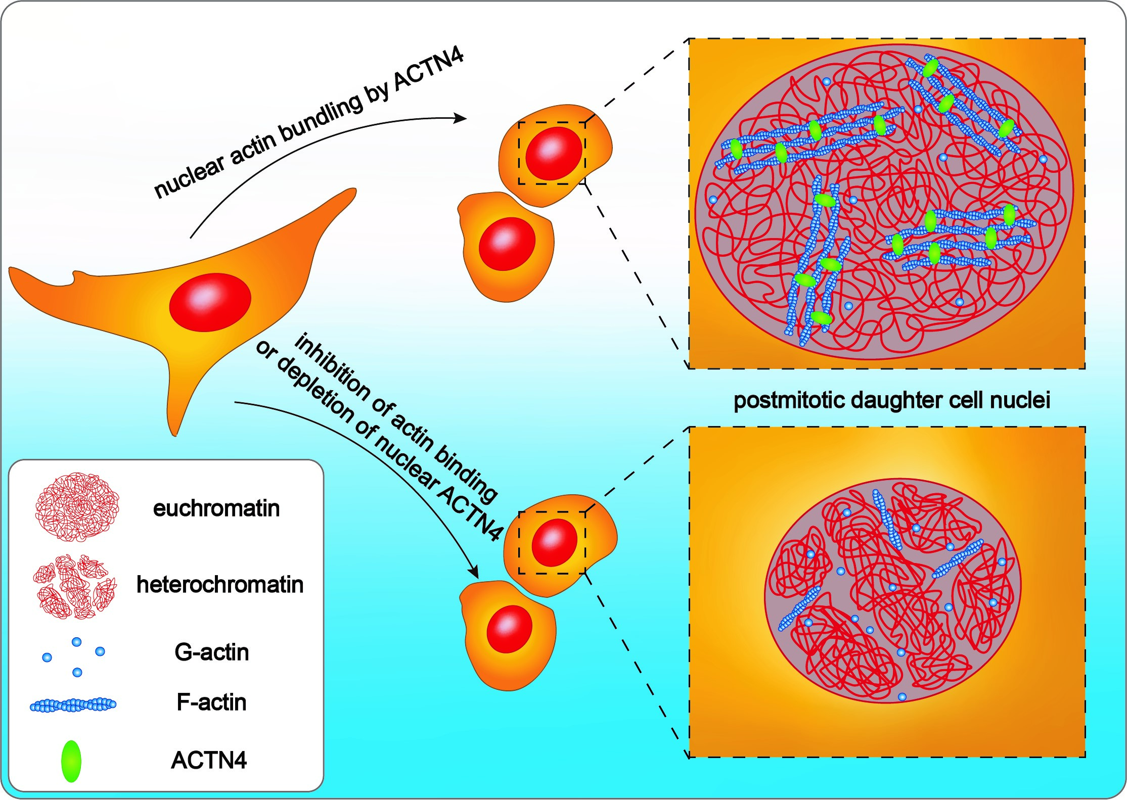 Fibers of the structural protein actin stabilize the outer form of the cell and transport substances into a cell. The mechanisms that influence the growth of the cell nucleus after division were less well known by scientists. The researchers have published their results in the journal 'EMBO reports'.