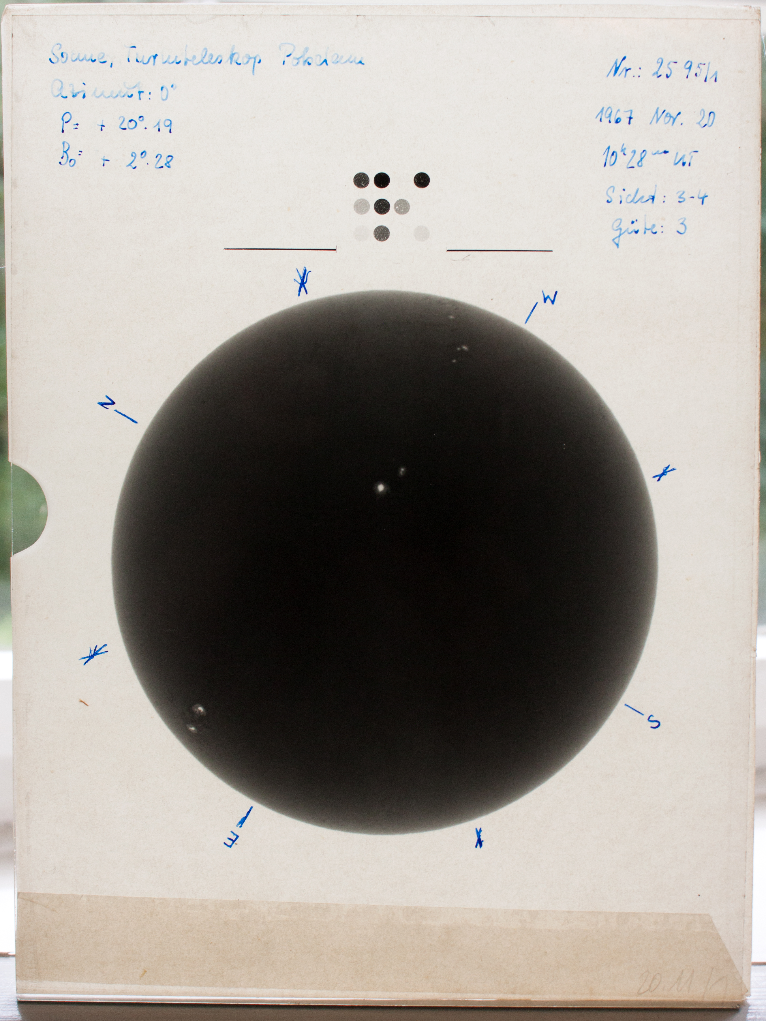 Die meisten der 3.500 Aufnahmen entstanden ab 1943 bis in die späten 60er Jahre mit etwa 128 Bildern pro Jahr. Nach 1970 fanden mit durchschnittlich 22 Bildern pro Jahr nur noch sporadisch Sonnenbeobachtungen statt. Diese Schwankungen in der knapp 50-jährigen Serie haben verschiedene Ursachen: Am Ende des Zweiten Weltkriegs mussten die Beobachtungen wegen Bombenschäden pausieren, ebenso erschwerte die mangelnde Verfügbarkeit von Fotoplatten die Aufnahmen in den folgenden Jahren. Waren aufgrund fehlender Sonnenaktivität keine Sonnenflecken zu sehen, denen das Hauptinteresse der Sonnenforschung galt, verzichtete man auf Aufnahmen. Auch Änderungen in der Priorität von wissenschaftlichen Zielsetzungen führten zu einem Rückgang. Nicht zuletzt sorgten schlechtes Wetter oder Beobachtungsbedingungen für Unterbrechungen in der Beobachtungsreihe.