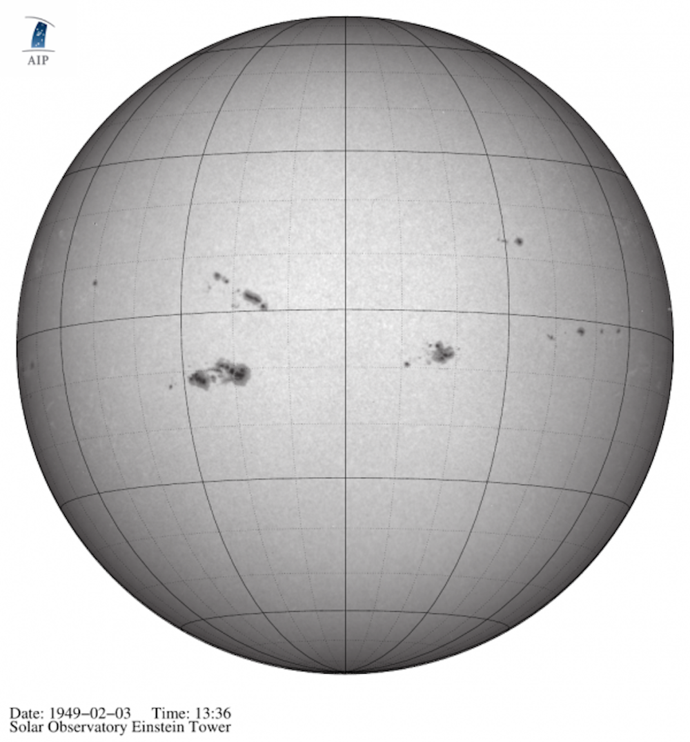 Das großangelegte Digitalisierungsprojekt APPLAUSE stellt in seiner neuen Datenveröffentlichung neben historischen Himmelsbeobachtungen verschiedener Teleskope nun auch tausende fotografische Aufnahmen der Sonne online zur Verfügung, die zwischen 1943 und 1991 am Sonnenobservatorium Einsteinturm in Potsdam entstanden sind.