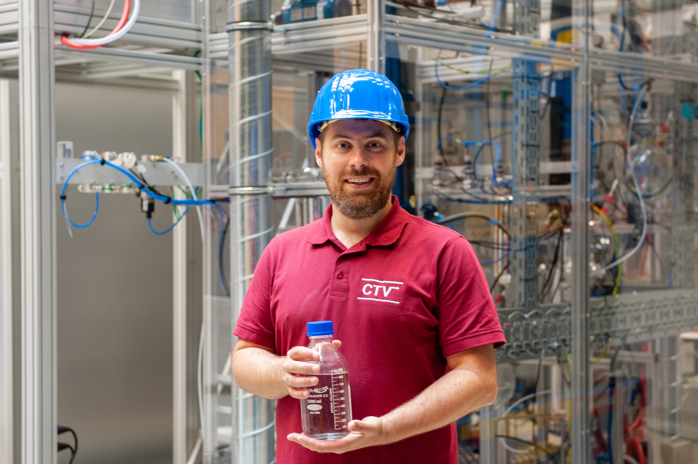 Als Alternative für fossilen Dieselkraftstoff wird in NAMOSYN der Kraftstoff OME (Oxymethylenether) untersucht. Um Komponenten für OME im Pilotmaßstab herzustellen, hat Prof. Dr.-Ing. Jakob Burger, Leiter der Professur für Chemische und Thermische Verfahrenstechnik an der Technischen Universität München (TUM), mit seinem Team nun eine Demonstrationsanlage am Campus Straubing errichtet. Er forscht seit Längerem an der Umsetzung von synthetischen Kraftstoffen (sogenannten „SynFuels“) wie OME für den Transportsektor. Der TUM Campus Straubing hat das Prozesskonzept zusammen mit den Partnern der TU Kaiserslautern und der von Prof. Burger mitgegründeten Firma OME Technologies GmbH in den vergangenen Jahren entwickelt und ausgearbeitet. „Die Demonstrationsanlage ist der letzte und wichtigste Schritt vor der industriellen Umsetzung im Produktionsmaßstab", betont Burger.