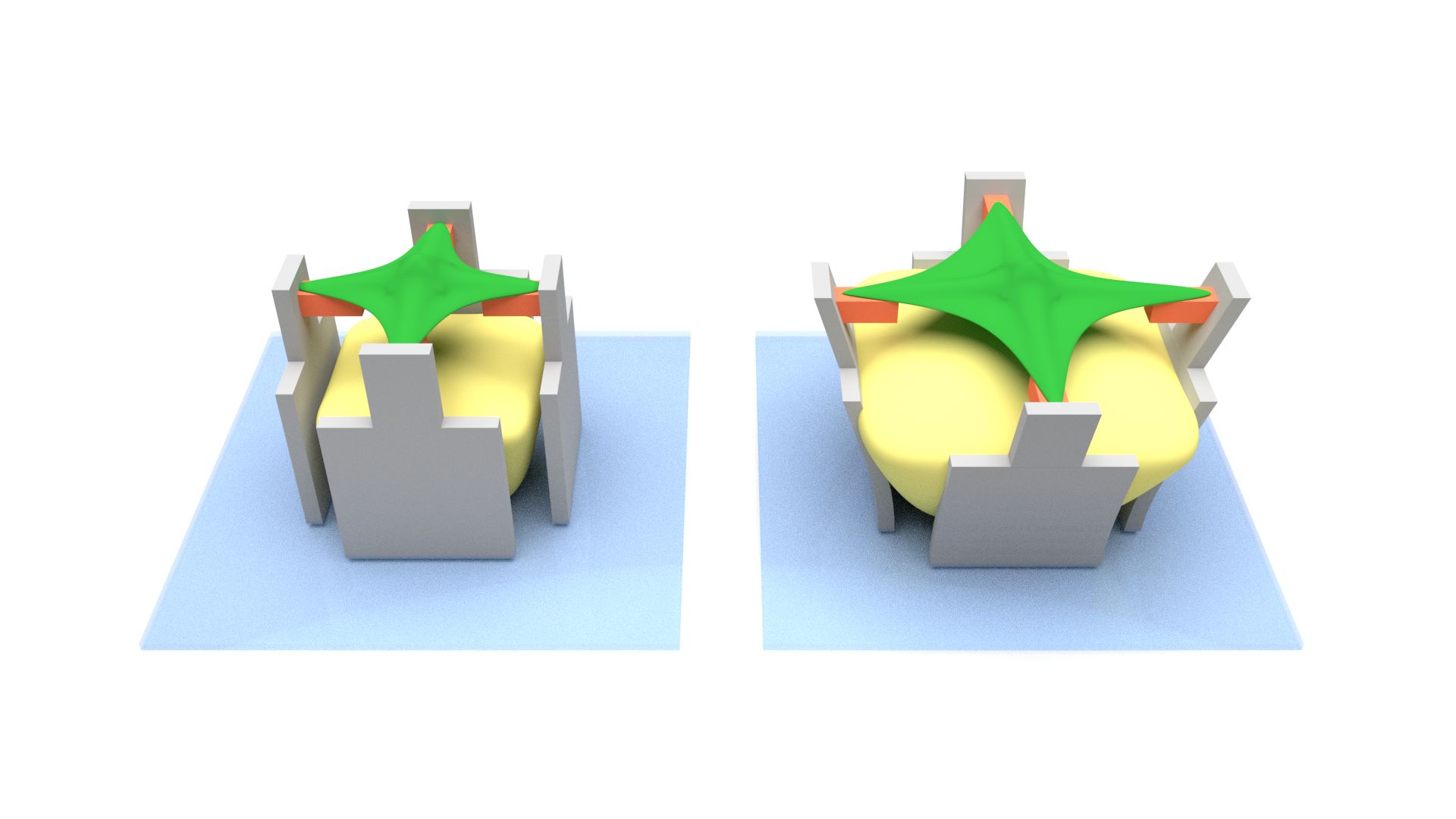 Im aktuellen Fall verwendeten die Forscherinnen und Forscher drei verschiedene Druckertinten: Eine Tinte aus protein-abweisendem Material, mit der sie das eigentliche Mikrogerüst herstellten. Mit einer zweiten Tinte aus protein-anziehendem Material fertigten sie anschließend vier Balken, die jeweils mit einem der Gerüstpfeiler verbunden sind. Auf diesen vier Balken verankert sich die Zelle. Eine dritte Tinte ist der eigentliche Clou: Die Wissenschaftler „drucken“ mit ihr eine Masse im Inneren des Gerüstes. Geben sie dann eine spezielle Flüssigkeit zu, dehnt sich die Hydrogel-Masse aus. Sie entwickelt so eine Kraft, die ausreicht, um die Pfeiler mitsamt den Balken zu bewegen – und somit die Zelle auf den Balken zu strecken.