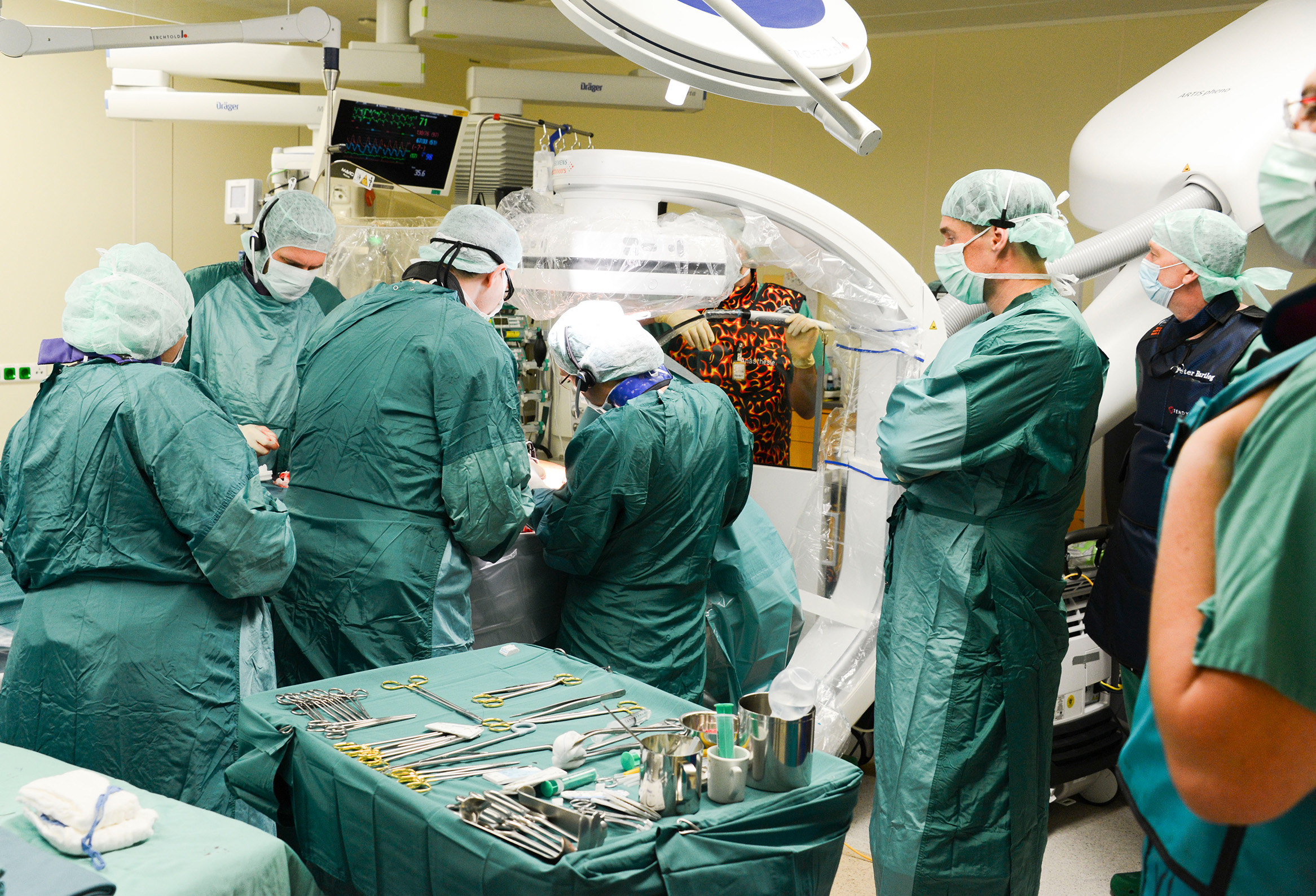 „Im Falle eines notwendigen Klappenersatzes entscheidet im HDZ NRW ein Herzteam aus Herzchirurgen und Kardiologen gemeinsam über das am besten geeignete Verfahren“, erläutert Professor Dr. Volker Rudolph, Direktor der Klinik für Allgemeine und Interventionelle Kardiologie und Angiologie. Die Oberärzte Prof. Dr. Sabine Bleiziffer (Herzchirurgie) und Dr. Kai Friedrichs (Interventionelle Kardiologie) führten erstmals einen kathetergestützten Mitralklappenersatz im Hybrid-OP des HDZ NRW bei einer 86-jährigen Patientin und einem 82-jährigen Patienten durch. Beide haben das jeweils etwa anderthalbstündige Verfahren gut überstanden und werden voraussichtlich in der nächsten Woche entlassen werden. „Eine Operation am offenen Herzen mit Einsatz der Herz-Lungen-Maschine wäre mit zu großen Risiken verbunden gewesen“, betonen die Herzspezialisten.
