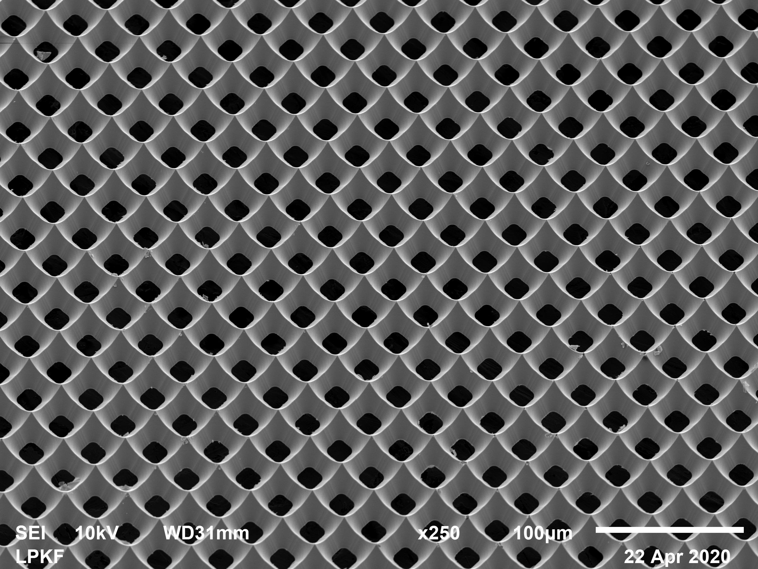 Derart feine Geometrien für die Schattenmasken in das Glas einzubringen gelingt nur durch das von LPKF entwickelte LIDE-Verfahren. Es ermöglicht die mikrometerpräzise und zugleich kostengünstige Strukturierung von Dünnstglas. Dabei bleibt das Glas frei von Defekten wie beispielsweise Mikrorissen oder thermischen Spannungen, welche anderenfalls zu einem schnellen Bruch der Schattenmaske beim Beschichtungsprozess führen würden.