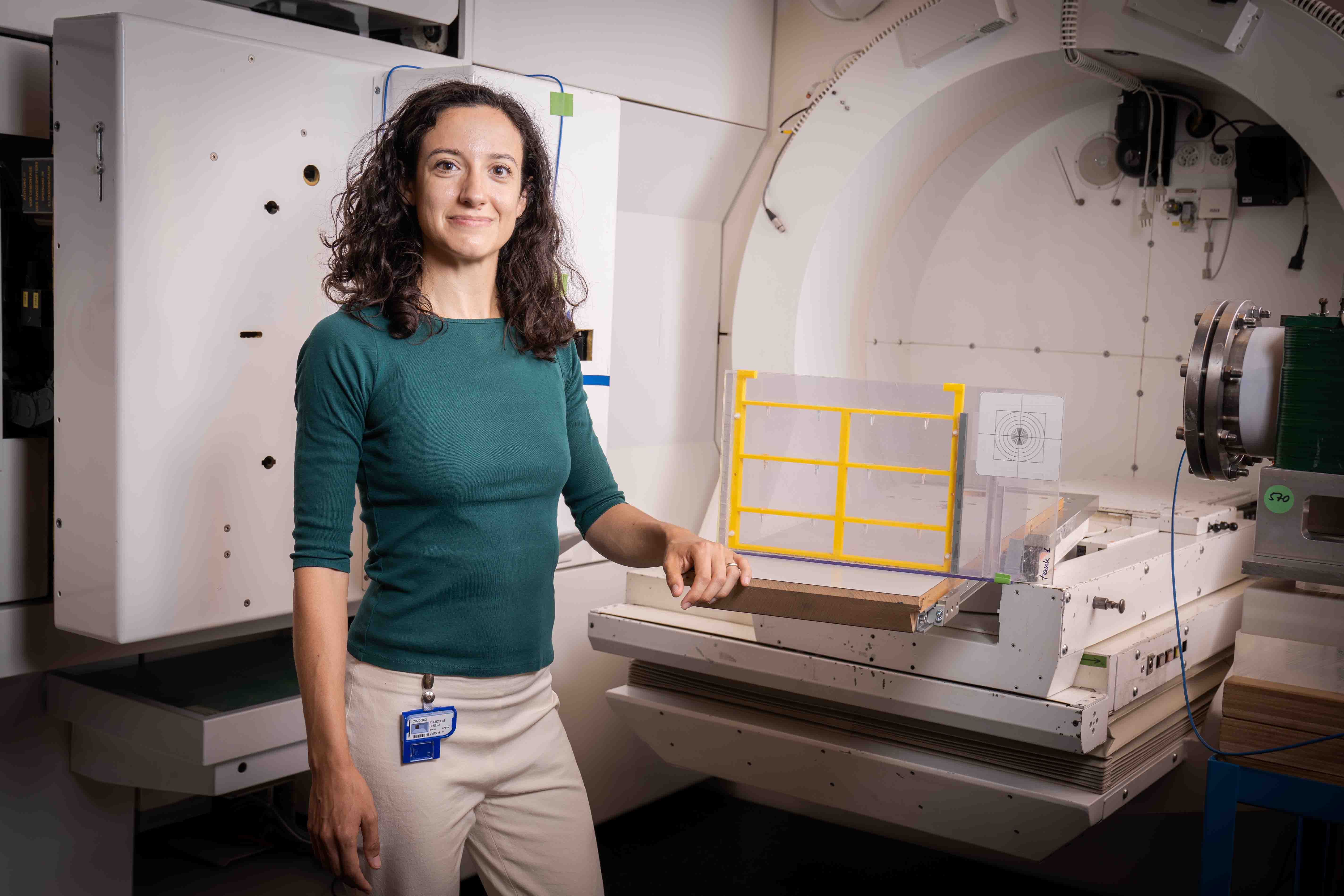 In ihren Experimenten wollen die PSI-Forschenden deshalb die maximal mögliche Intensität des Stahls nutzen und diese ohne Verluste auf biologisches Gewebe richten, das weniger als ein Millimeter dick ist. Dafür hat Teilchenphysikerin Serena Psoroulas mit ihrem Team die Einstellungen für die Strahlführung in einer früheren Behandlungsstation für Protonentherapie des PSI, die sogenannte Gantry 1, optimiert. «Gerade die älteren Kollegen hier am PSI haben grosse Erfahrung, weil sie die Apparate selbst entwickelt, aufgebaut und getestet haben», so Psoroulas. Sie haben die Kontroll- und Sicherheitssysteme eingerichtet und die Programmcodes für die Bestrahlung geschrieben.» Dieses Knowhow zwischen ingenieurtechnischer Spitzenleistung, medizinischer Expertise und Physik haben die PSI-Forschenden jetzt genutzt, um die weltweit ersten Experimente der FLASH-Bestrahlung mit der am PSI entwickelten Spot-Scanning-Technik durchzuführen.