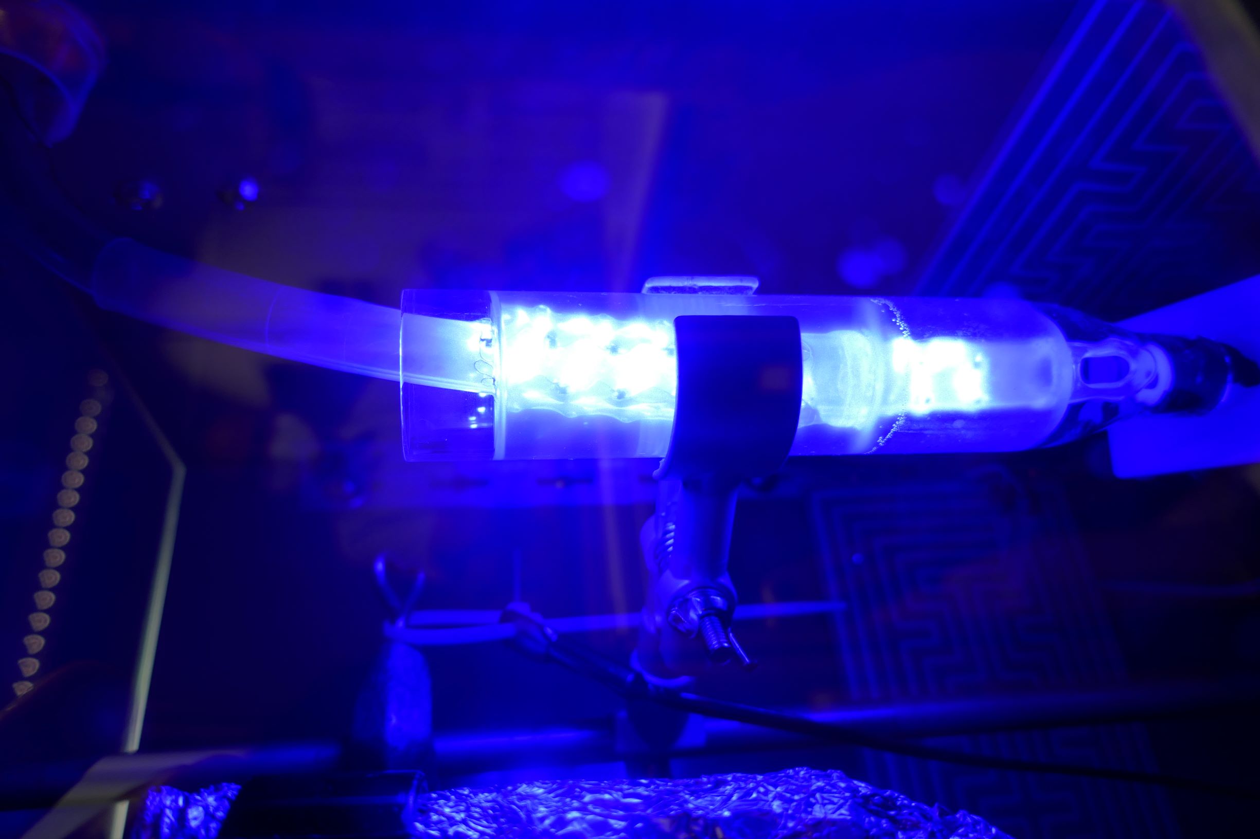 Hierzu integrierte er 48 1,6 mm kleine Miniatur-LEDs in einen handelsüblichen Beatmungstubus. Der blau-leuchtende Tubus bestrahlte im Versuchsaufbau eine Bakterien-Testlösung mit einer homogenen Bestrahlungsintensität und erreichte eine Reduzierung der Bakterienkonzentration um 99,9 % innerhalb von 6-9 Stunden. Die mikrobiellen Tests hemmten somit das Wachstum der Bakterien am Endotrachealtubus signifikant.