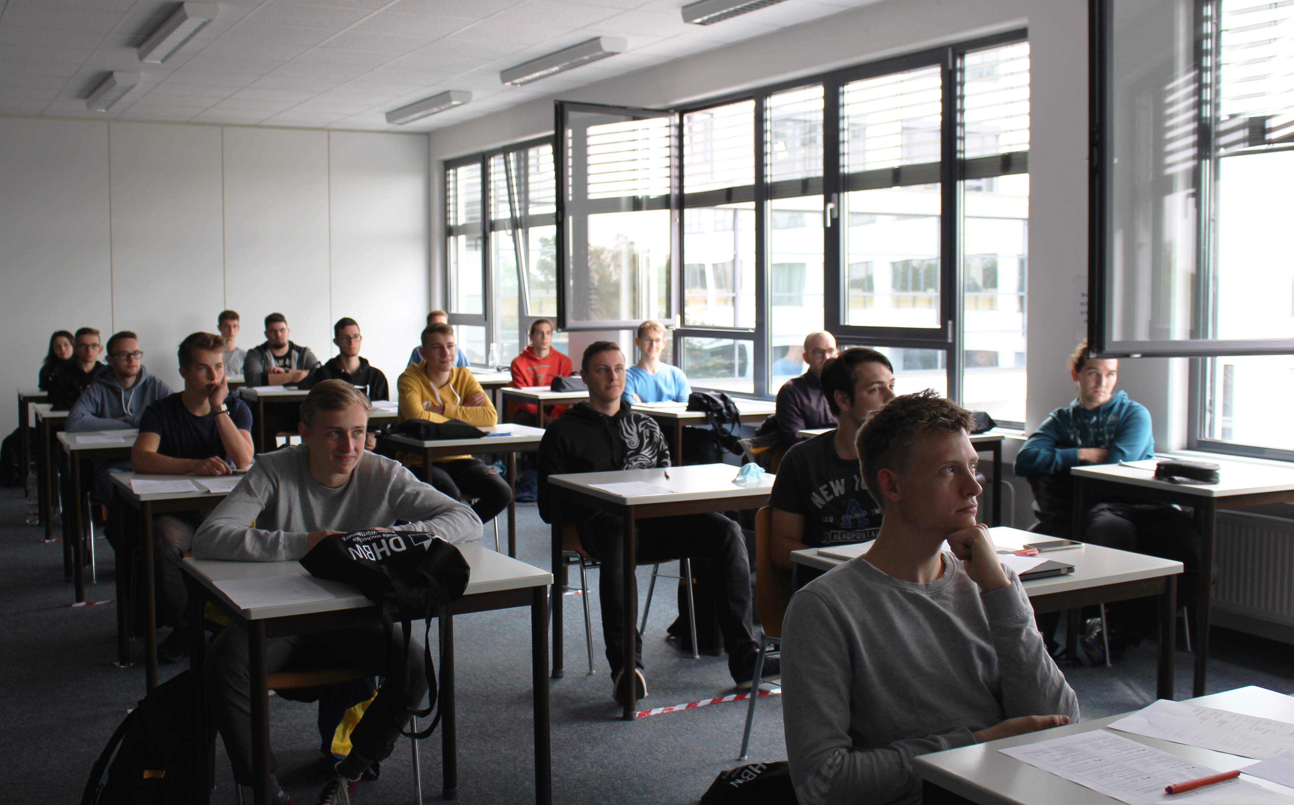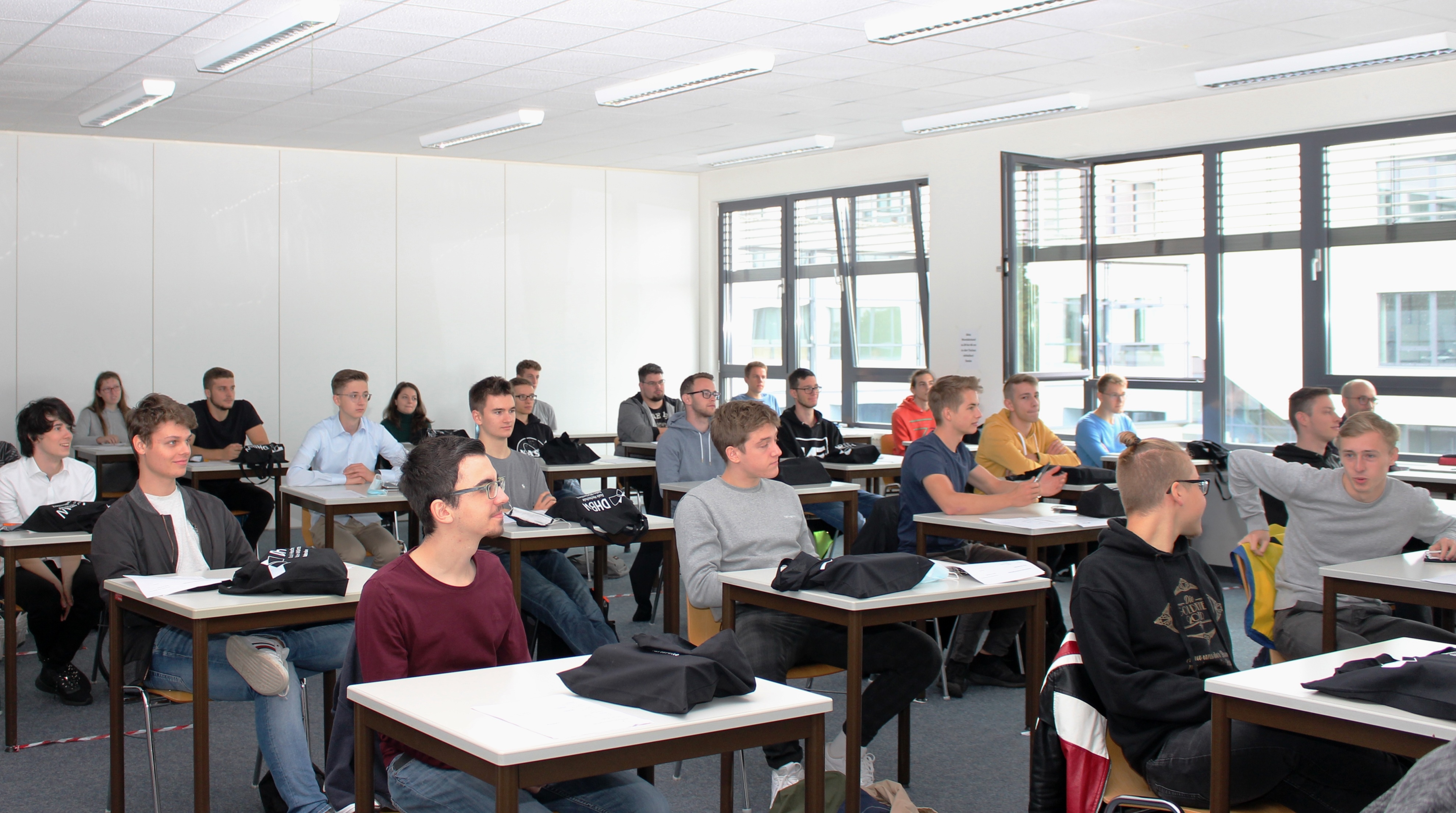 Am 1. Oktober begann ein Teil der „Erstis“ ihr Studium an der Dualen Hochschule Baden-Württemberg. Sie wurden nicht, wie es in den vergangenen Jahren üblich war, innerhalb einer großen Veranstaltung in der Mensa der DHBW Karlsruhe begrüßt, sondern ausschließlich in ihren Kursen von ihren Studiengangsleitungen. Der Grund: die derzeitigen Regelungen infolge der Maßnahmen zum Schutz gegen die Ausbreitung des Coronavirus. Die Einführungsveranstaltungen für die über 1000 Erstsemester werden zeitlich gestaffelt und finden zu unterschiedlichen Zeitpunkten während des Semesters statt.