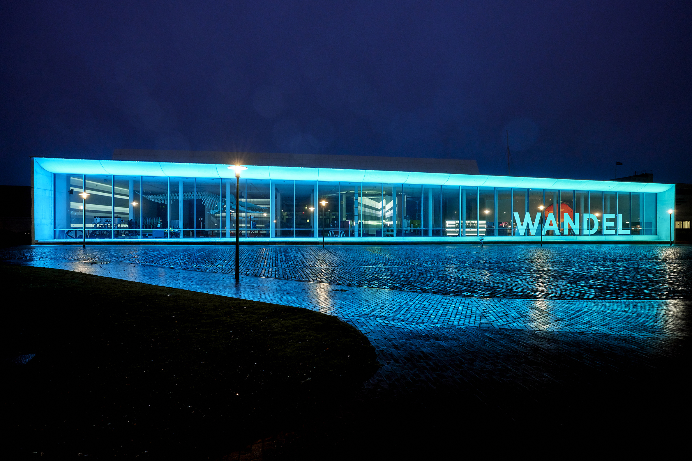 From Wednesday, 30 September, passers-by at the Bangert Building will experience colour accents at the blue hour. At dusk, the FRAME lighting installation will shine for the first time. LED bars have been installed on the building above and below the window front. These translate the rhythm of the tides into a choreography of light. Helmut Maternus Bien, Managing Director of Westermann Kommunikation, developed the concept and advised the DSM on its implementation. "The 'FRAME' lighting frame stages the large-format museum complex and provides a stage for the themes. The museum opens up towards the open-air grounds and the city and blends permanently into the night view of Bremerhaven. I wish the scientists a happy and responsible use of this extremely strong signal system. It makes the museum visible from afar," says Bien, who also works as an exhibition organiser, cultural manager and journalist.