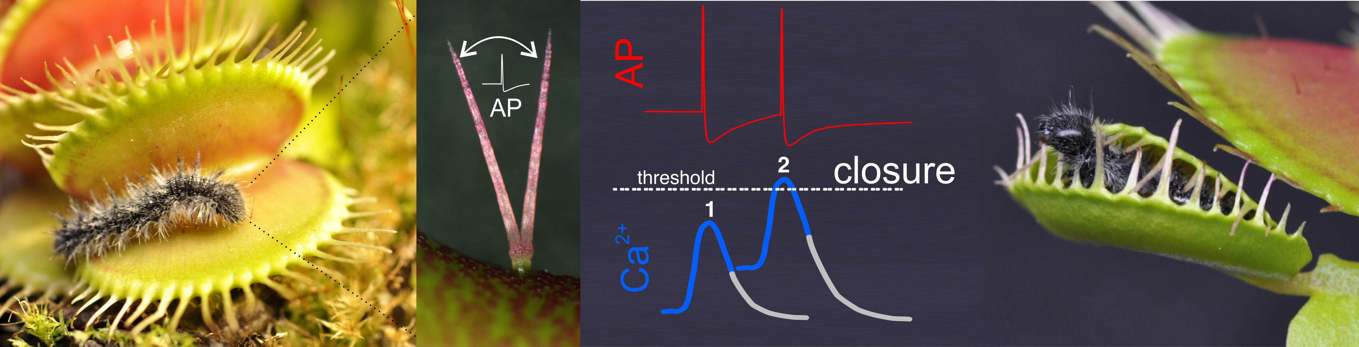 Berührt ein Beutetier eines der Sinneshaare auf der inneren Fallenseite von Dionaea, wird der mechanische Reiz in ein elektrisches Signal umgewandelt. Dieses sogenannte Aktionspotential breitet sich über die gesamte Falle aus. Als Reaktion darauf passiert erst einmal nichts. Wenn aber innerhalb von 30 Sekunden ein zweites Aktionspotential die Falle elektrisch erregt, schnappt sie zu. Lässt dagegen der zweite Reiz länger auf sich warten, wird das erste Aktionspotential aus dem Kurzzeitgedächtnis der Venus-Fliegenfalle gelöscht.