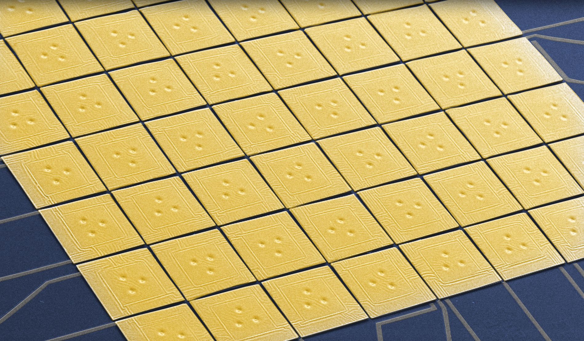 A false color scanning electron microscopy image of the 8x8 array of maXs30 detectors.