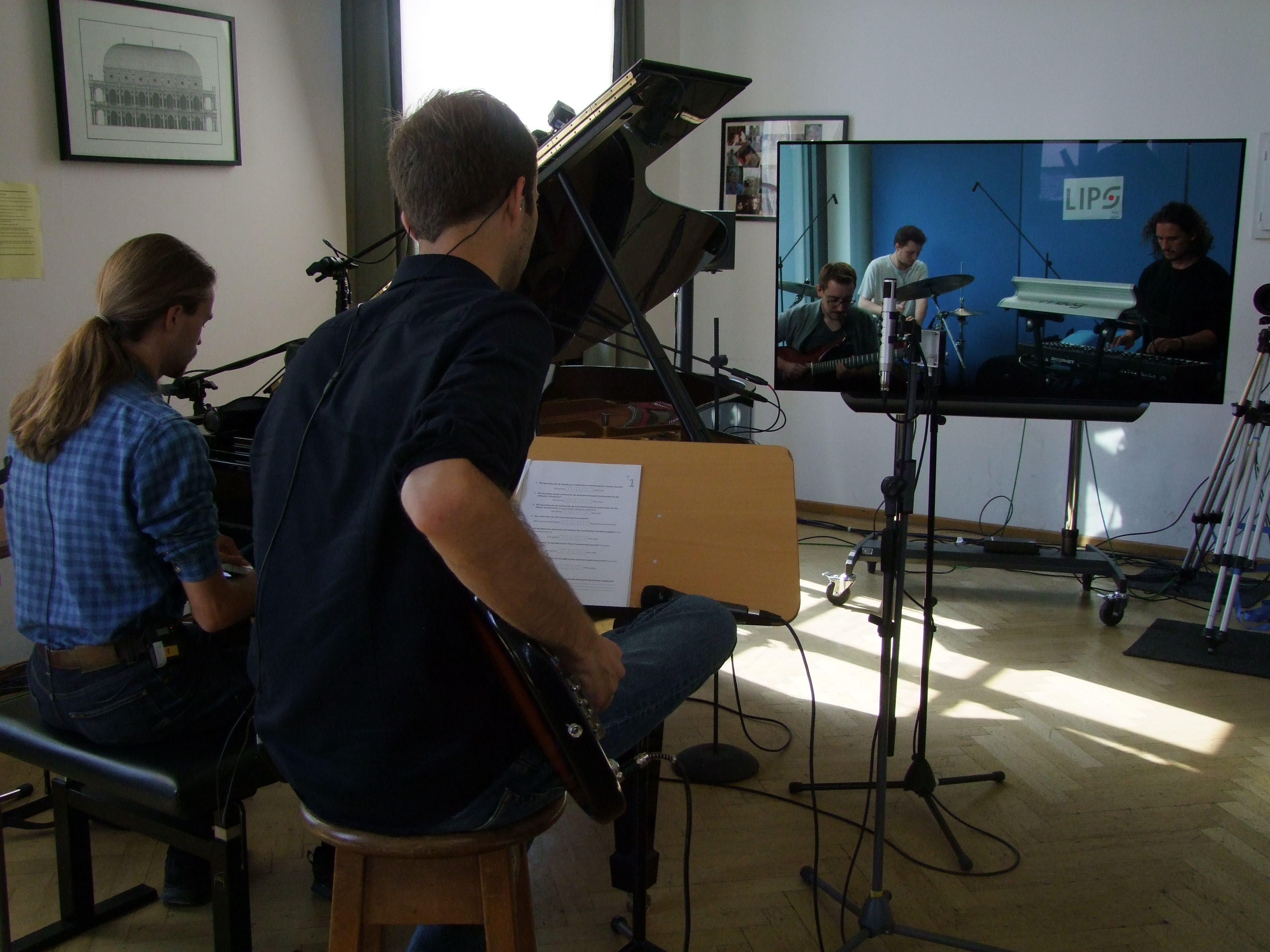 Im Fokus von LIPS stehen nun zwei wichtige Aspekte: zum einen das immersive Bild- und Tonerlebnis für Musiker*innen und Publikum, zum anderen die Schaffung und Erforschung technologischer Grundlagen und Plattformen. »Immersion« beschreibt dabei den Effekt des Eintauchens in einen Raum. LIPS versucht, ein virtuelles Fenster zwischen zwei entfernten Räumen zu realisieren. Dabei evaluieren die Studierenden der beiden Musikhochschulen kontinuierlich die Entwicklungsstufen dieser neuen Technologie. Neben der Übertragung von Bild und Ton wird auch die Beleuchtung an beiden Standorten kontinuierlich angepasst, sodass die Beteiligten immer einen möglichst gleichen Raumeindruck haben. Langzeitziel des Projekts ist es, zwei Standorte so miteinander zu verbinden, dass die Musizierenden auf den Bühnen die Entfernung nicht mehr bemerken. Damit ergäben sich völlig neue Möglichkeiten für Proben, Vorspiele, Unterricht und letztendlich auch Konzerte.
