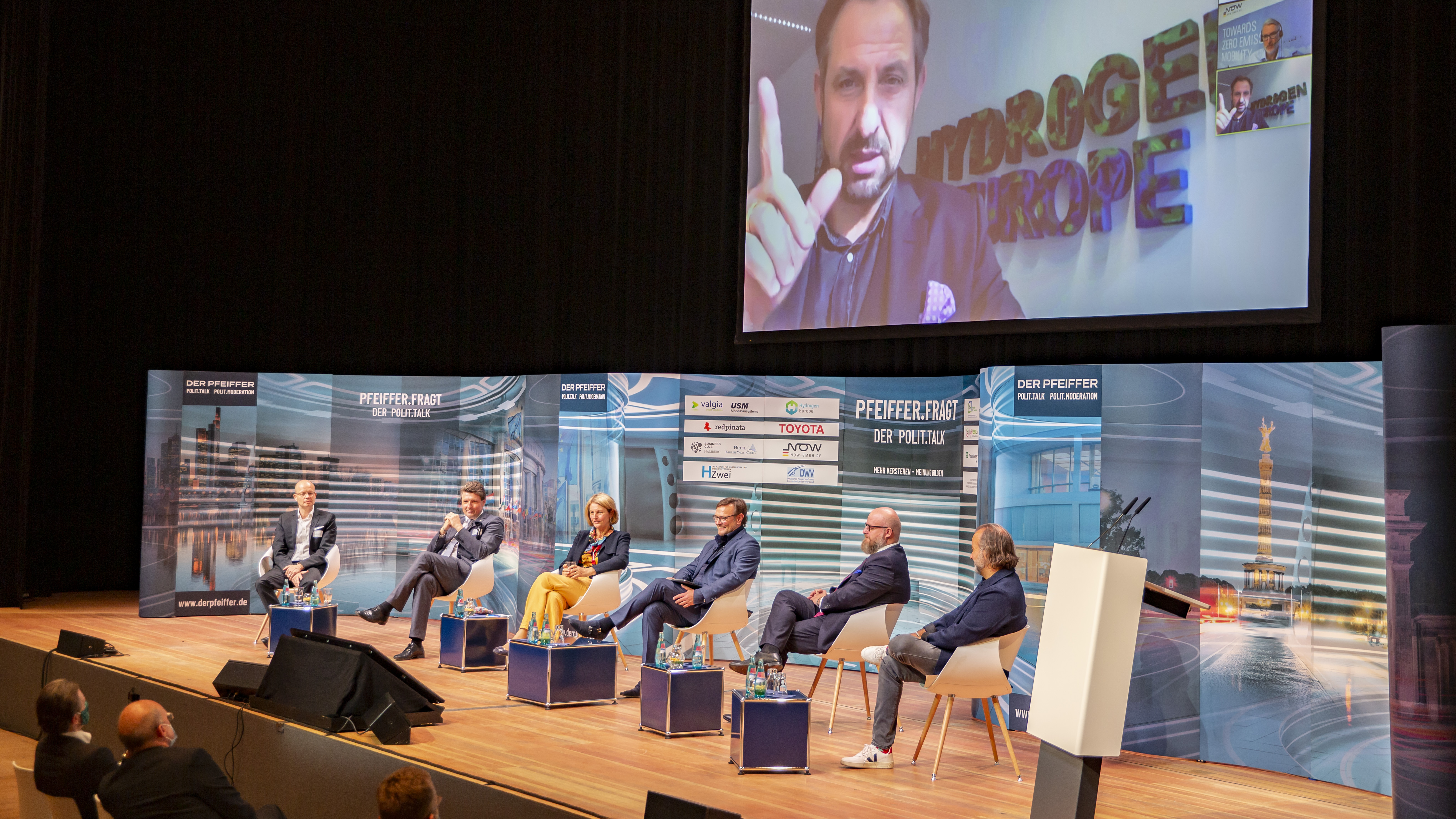Diesen engen Austausch zwischen Politik, Wirtschaft und Gesellschaft machte nicht zuletzt das hochkarätig besetzte Startpanel deutlich. Hier diskutierten im ersten Teil des Veranstaltungstages Gunda Röstel, Geschäftsführerin der Stadtentwässerung Dresden GmbH und Mitglied im Nationalen Wasserstoffrat, Prof. Dr. Ralf B. Wehrspohn vom Fraunhofer-Vorstand, Dr. Carsten Czenkusch von Vitesco Technologies GmbH, Live aus Brüssel zugeschaltet Jorgo Chatzimarkakis, Generalsekretär von Hydrogen Europe, Andreas Nowak, verkehrspolitischer Sprecher der CDU-Fraktion im Sächsischen Landtag, Dr. Jörg Starr (Clean Energy Partnership), und – ebenfalls zugeschaltet – Kurt-Christoph von Knobelsdorff, Geschäftsführer der NOW GmbH.