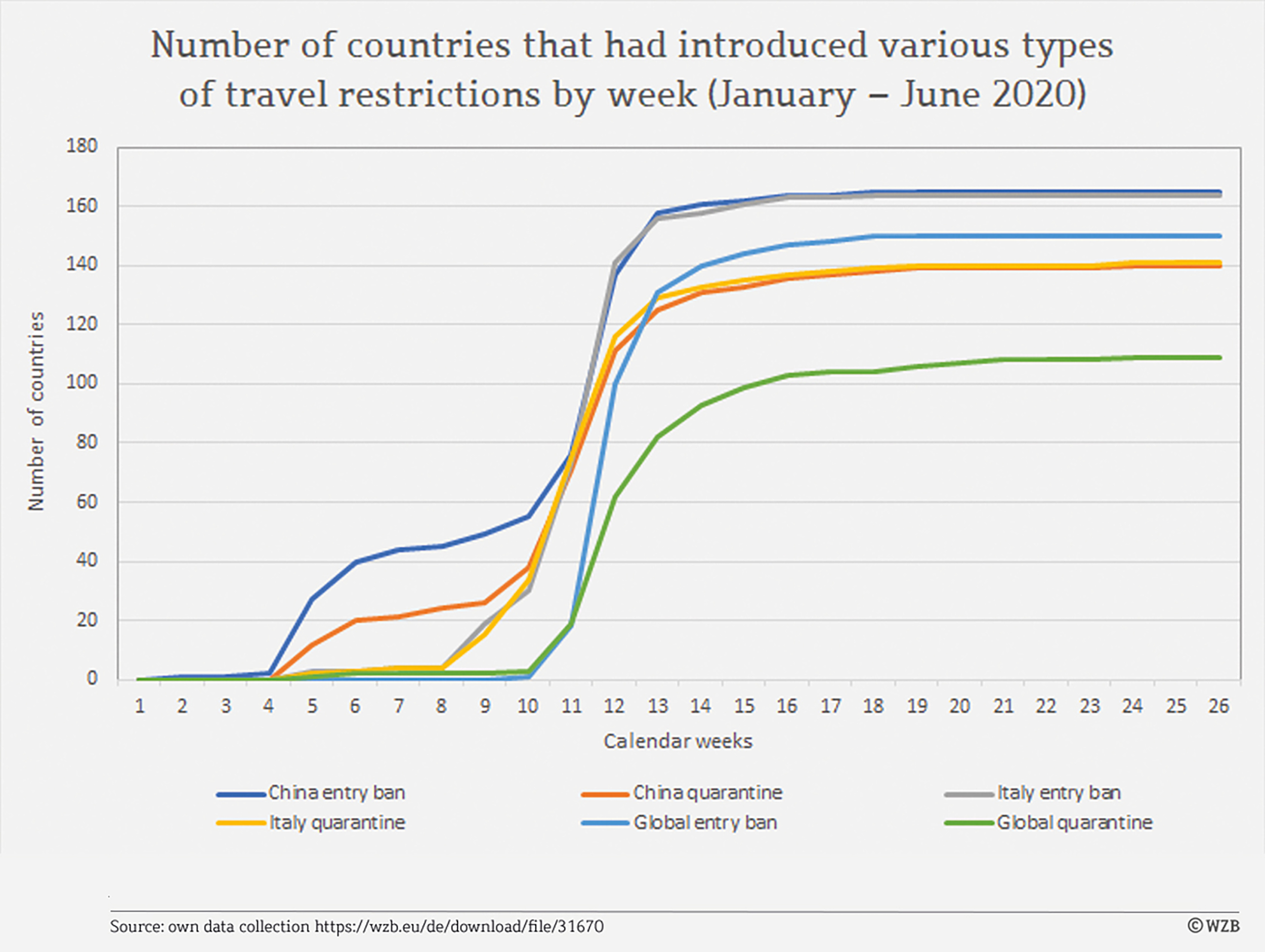 Frühzeitige Reisebeschränkungen haben wesentlich dazu beigetragen, die Ausbreitung des Coronavirus zu verlangsamen und die durch Covid-19 verursachten Todesfälle niedrig zu halten. So hatten Länder, die bereits im Februar oder Anfang März Einreisebeschränkungen verhängten, bis zur Jahresmitte deutlich weniger Corona-Tote zu beklagen. Das ist das Ergebnis einer Studie von Ruud Koopmans, Direktor am Wissenschaftszentrum Berlin für Sozialforschung (WZB), in der er für 181 Länder untersucht hat, wie internationale Reisebeschränkungen und Covid-19-Sterblichkeitsraten zusammenhängen.